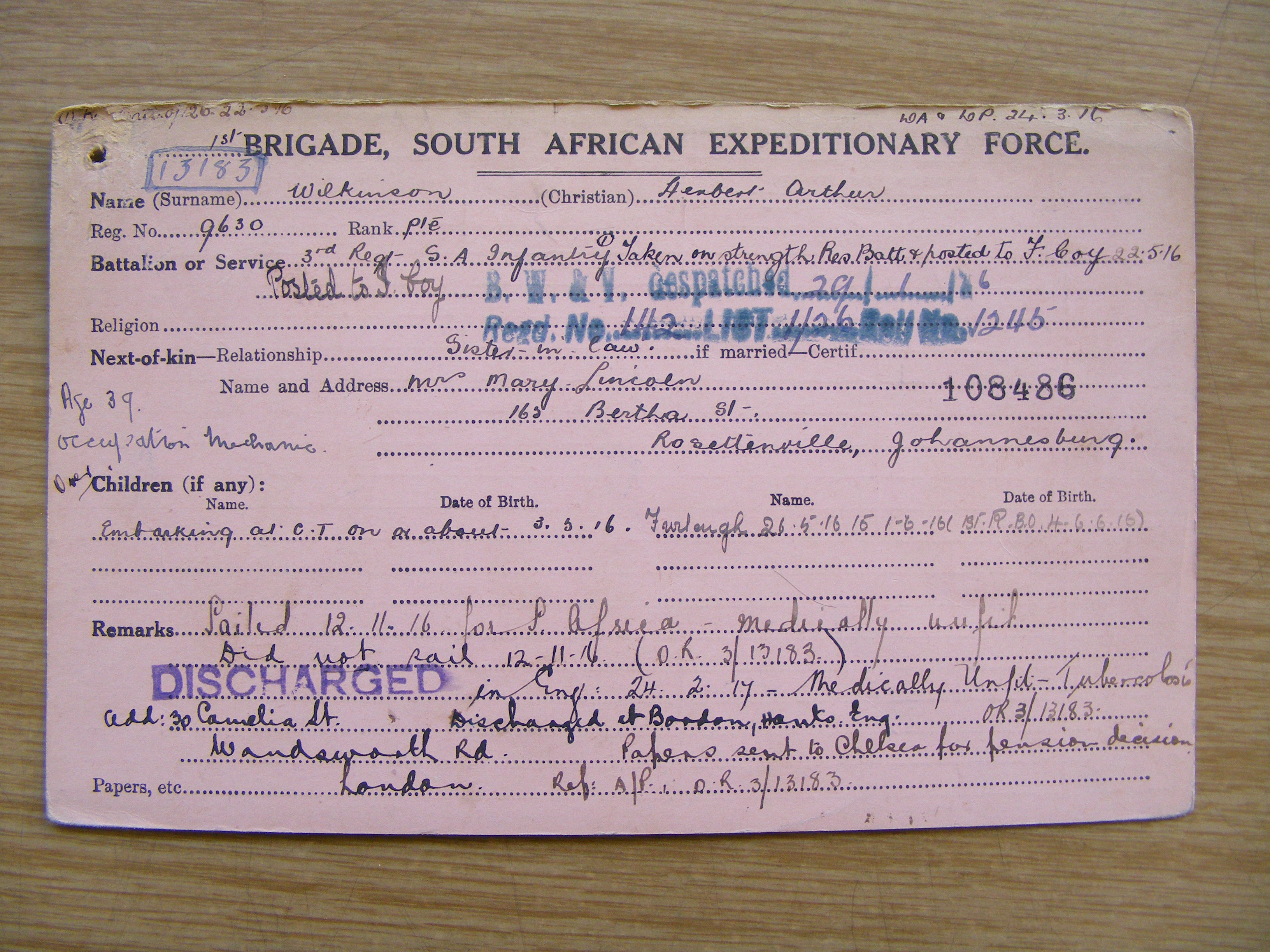 Brother-in-law of Mrs. Mary Lincoln, of 165 Bertha Street, Rosettenville, Johannesburg