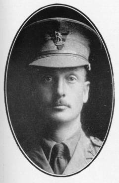 Killed in action, at Wolf Farm, Passchendaele, as soon as it appeared that the check was more than temporary he had gone ahead to endeavour by direct personal efforts to get his troops forward, but moving from shell-hole to shell-hole amongst the scattered groups, he drew upon himself the inevitable burst of machine gun fire, under which, fearlessly persisting, he at last fell mortally wounded |