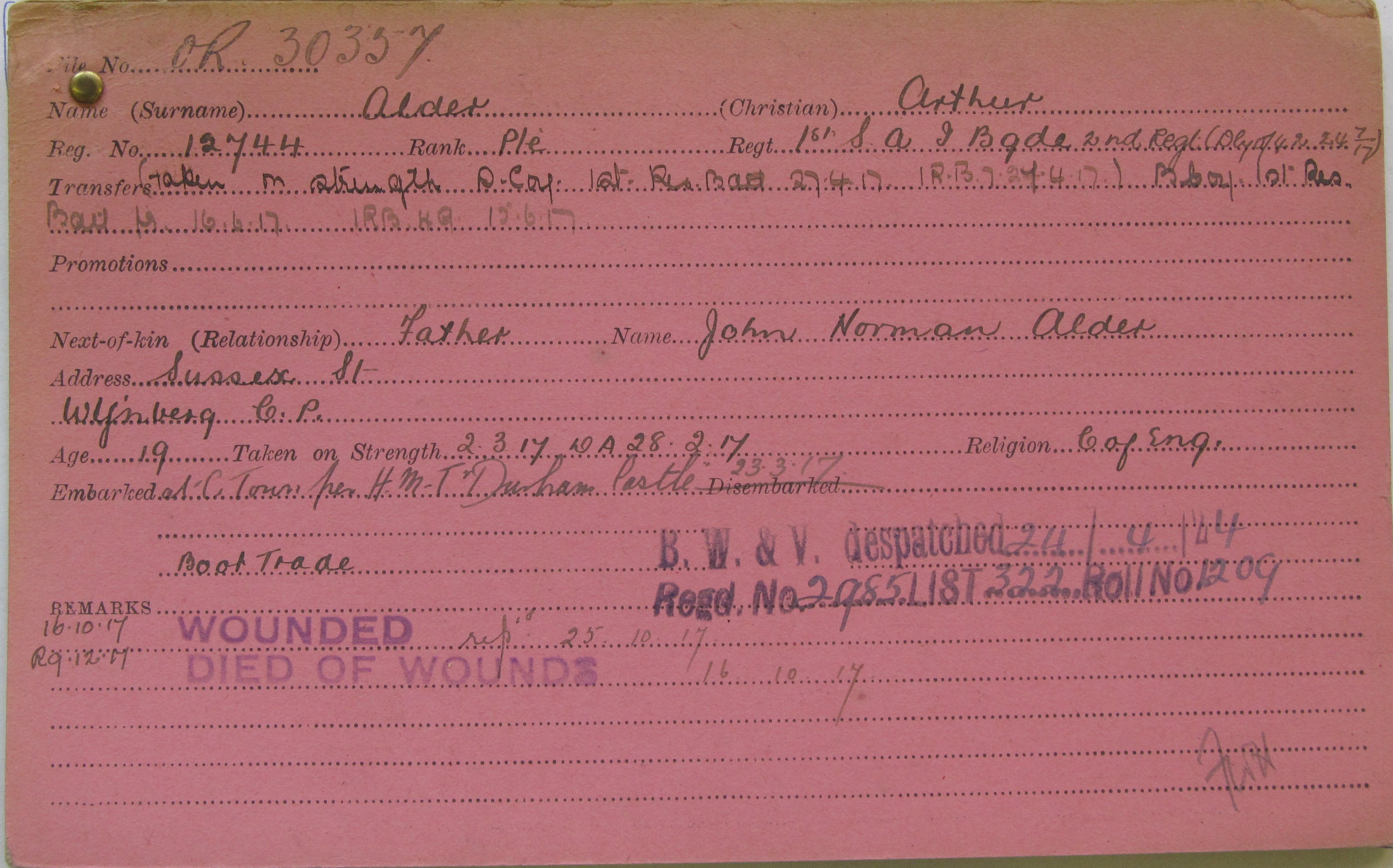 Son of John Norman and the late Annie Alder, of Sussex Street, Wynberg, Cape Province. Born India. His brother also died in service