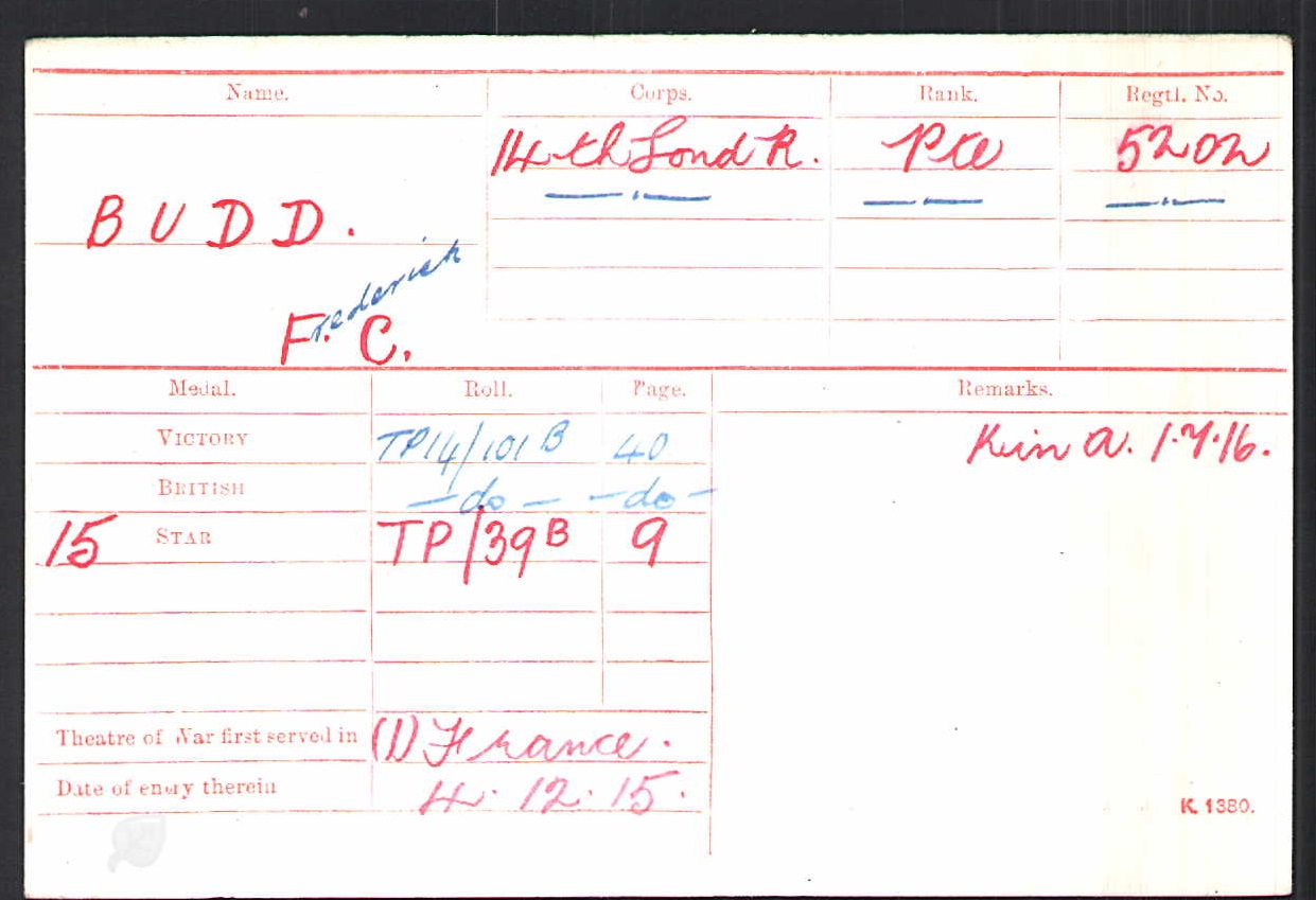 Son of James and Mary Anne Louisa Budd. ref. South African Roll of Honour 1914-1918