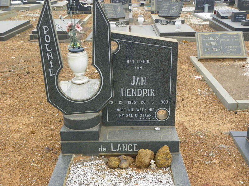 Died in Shooting Incident, at Zeerust. He was accidentally shot by another soldier while standing guard duty. When the soldier placed the magazine on his rifle, a shot went off, hitting de Lange in the chest. |