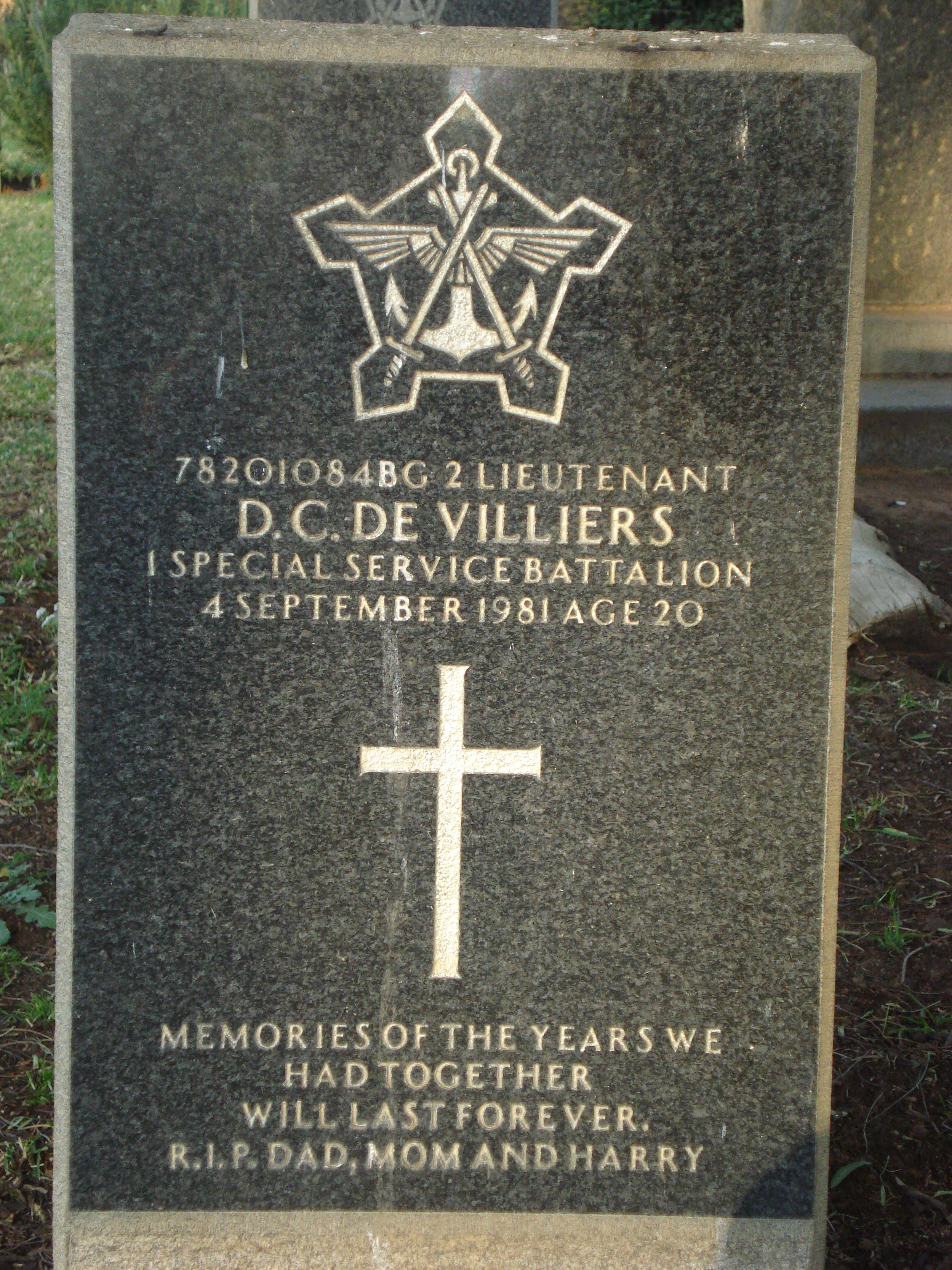 Son of Charl Jacobus de Villiers and Minnie Margery Elizabeth (nee Jacobs) de Villiers |