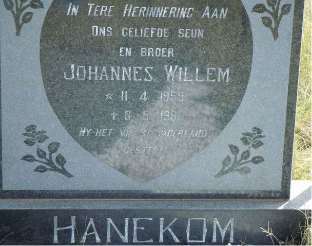 Son of Mr. and Mrs. H. A. Hanekom |