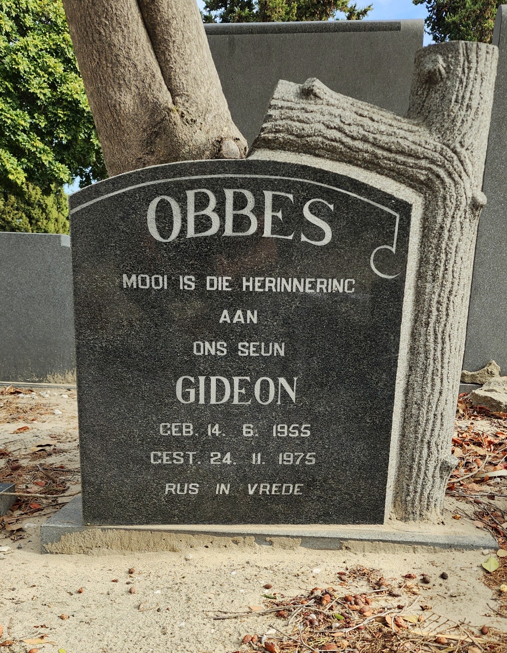 Killed in action, during a contact with MPLA forces at a bridge 40 kms North-East of Novo Redondo in Angola. Two armoured cars were ordered forward but were met by a hail of bullets and shells. One Eland broke down and when the machine gun was hit and rendered unusable, Obbes jumped out of the turret and was mortally wounded. |