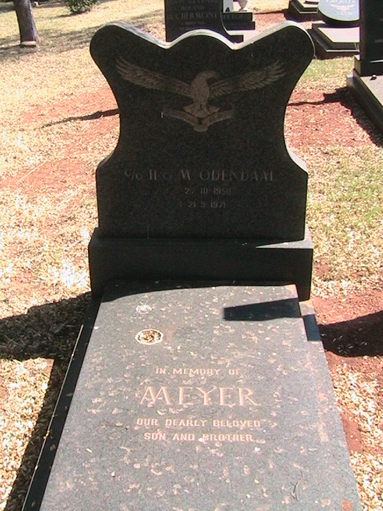 Son of Brigadier H. O. M. Odendaal DFC and bar, after whom he was named. |
