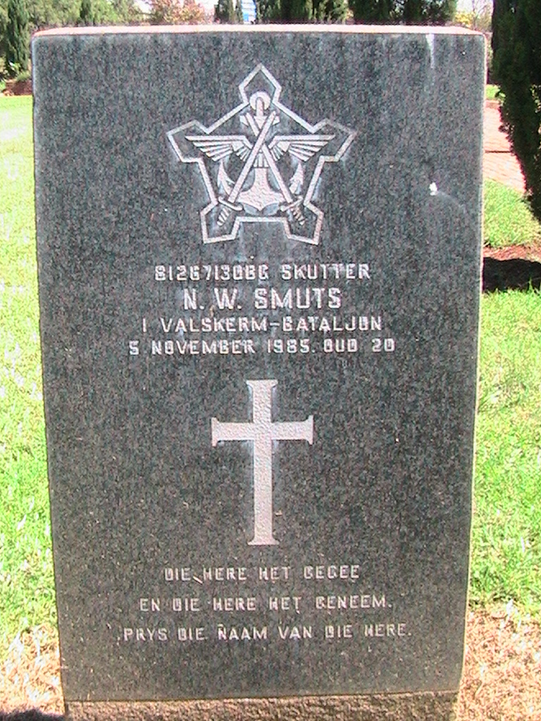 Son of Dr. and Mrs. J. Smuts, of George Road, Eldoraigne, Verwoerdburg. He had a sister and 2 brothers. Matriculated at the Voortrekkerhoogte High School. |