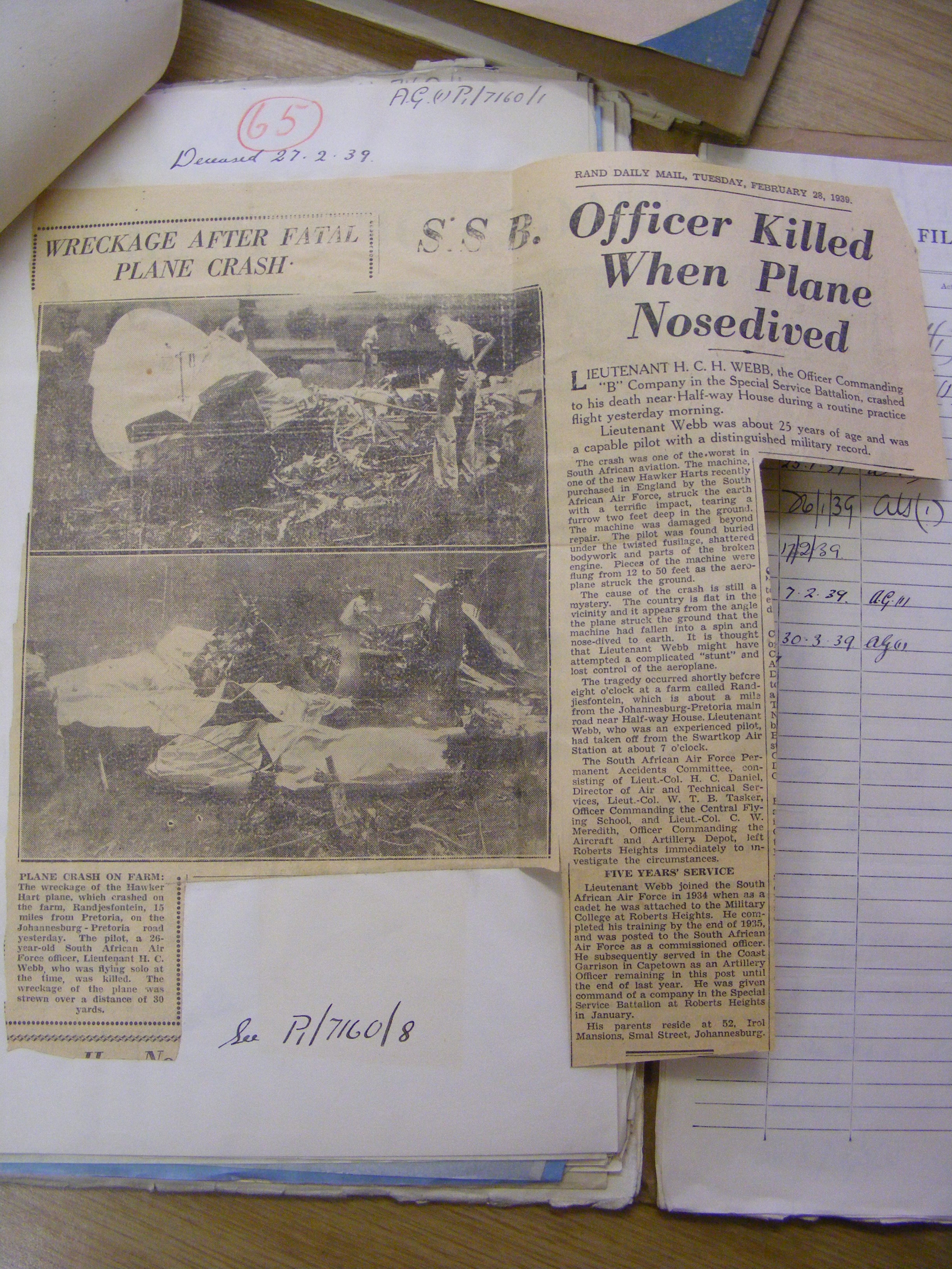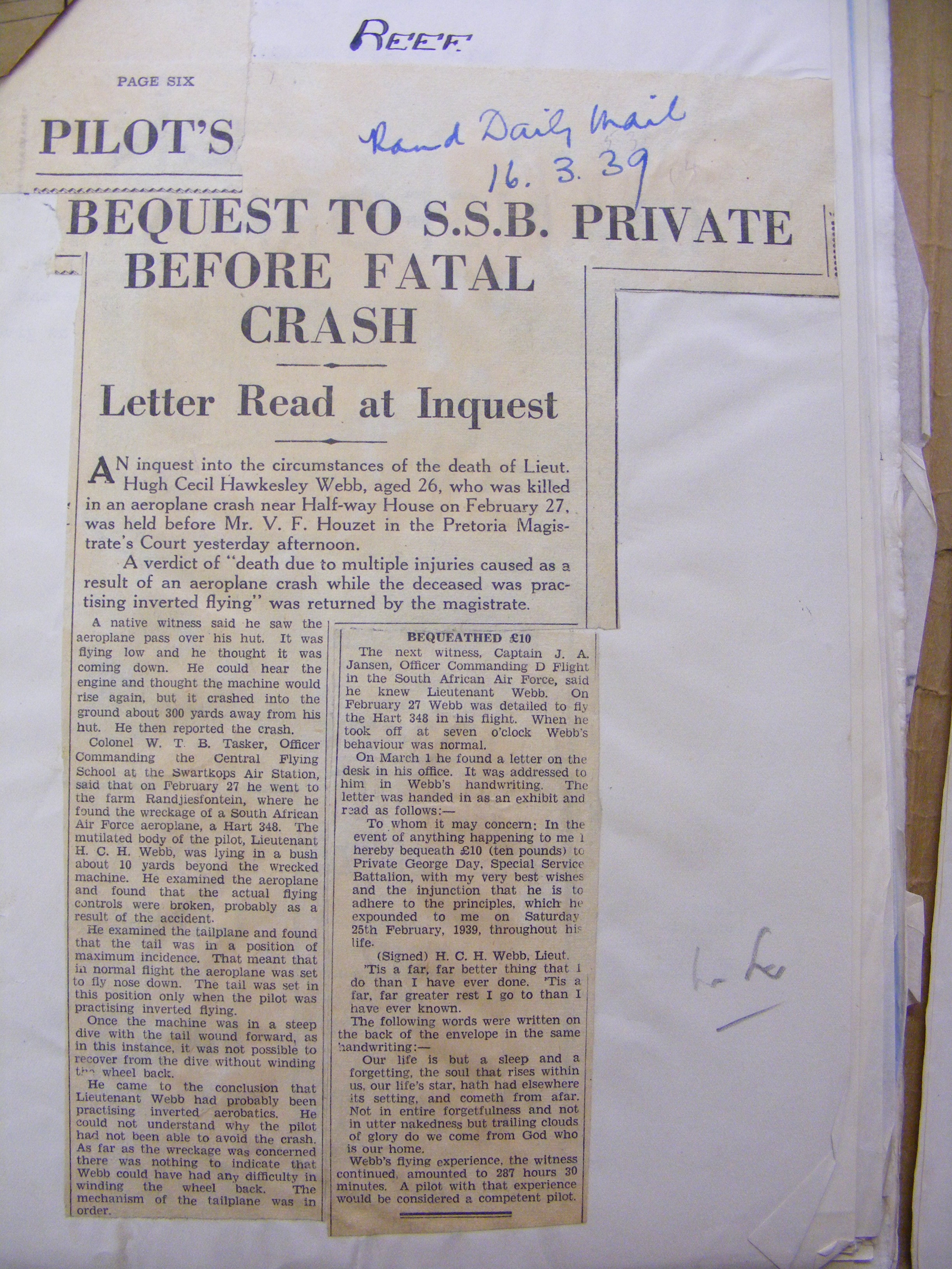 Son of Mr. P. G. H. Webb, of Johannesburg. ref. 85 years of SAAF |