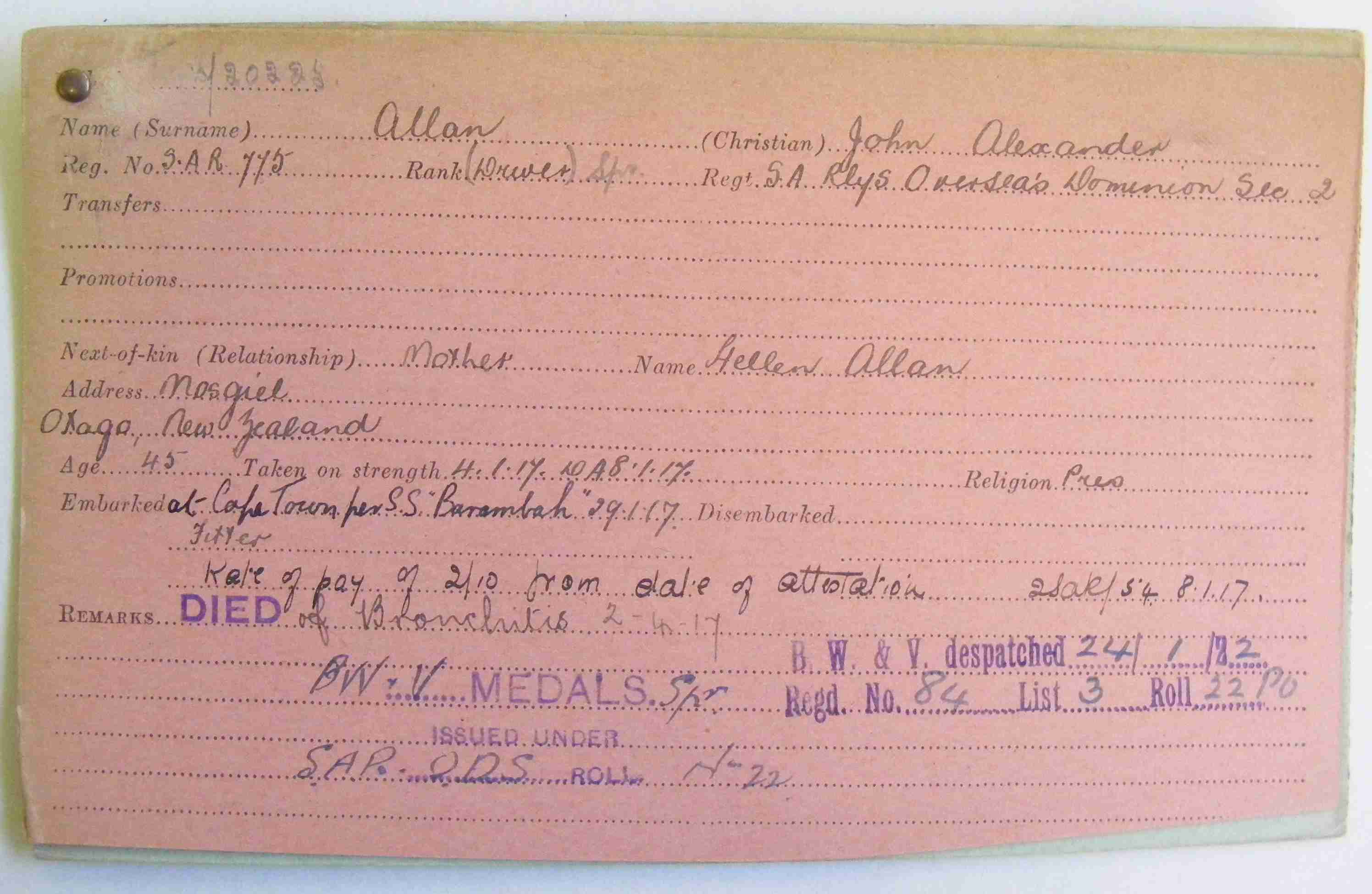 Son of Hellen Allan, of Mosgiel, Otago, New Zealand