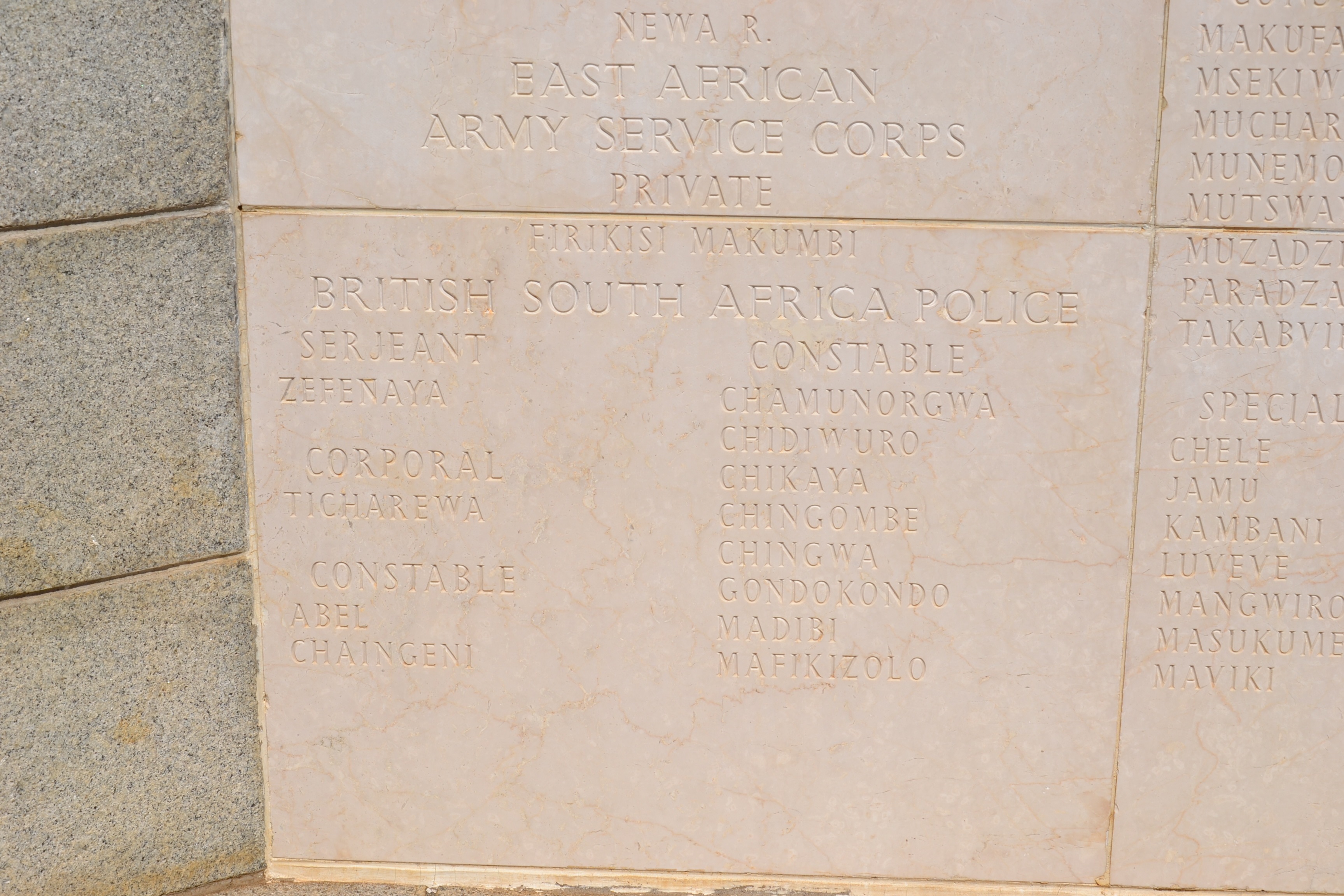 Other Casualties commemorated in Zimbabwe