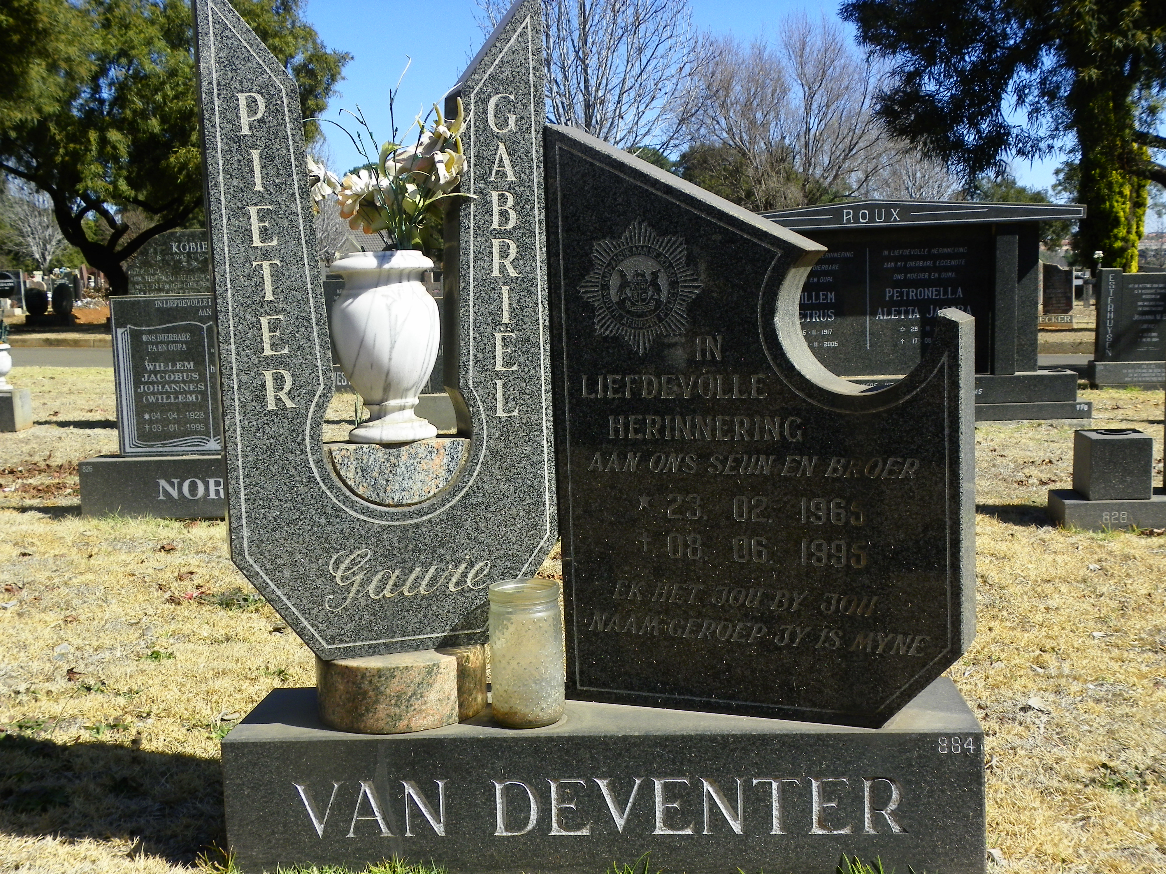 Died in the execution of his duty as a member of the South African Police