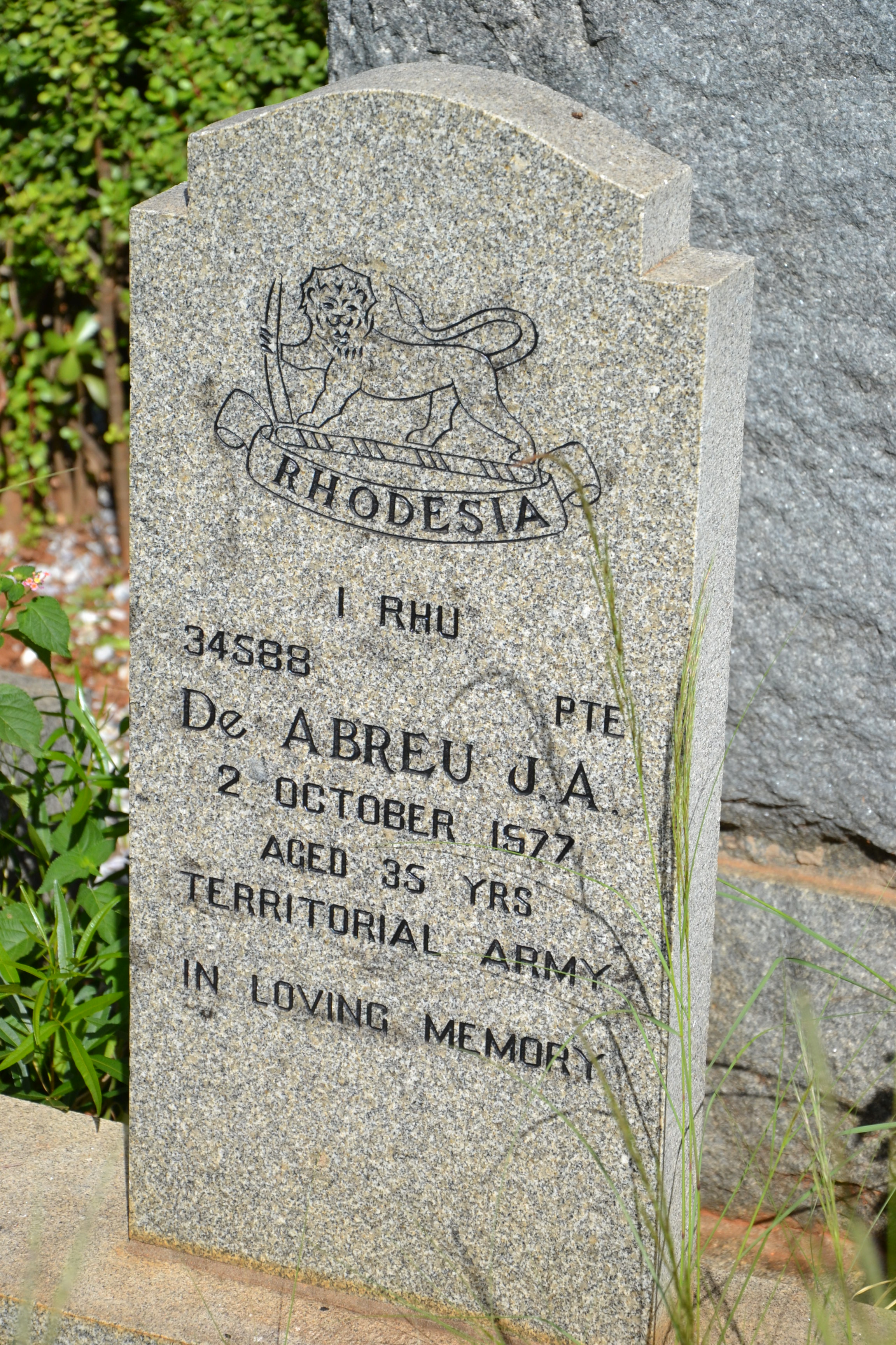 Headstone has 1 RHU as unit. ref. "Rhodesian Roll of Honour" by P. Geldenhuys (Roll compiled by Dr. J. R. T. Wood). Amendments from "Rhodesian Combined Forces Roll of Honour 1966-1981", by Adrian Haggett and Gerry van Tonder. |