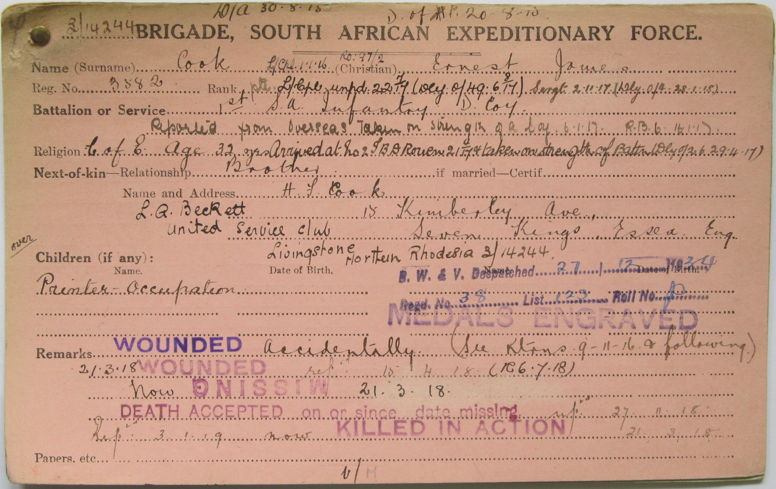 Son of the late Charles Edward and Agnes Ann Cook. ***Buried in Parish of Fins, Grave 44. |