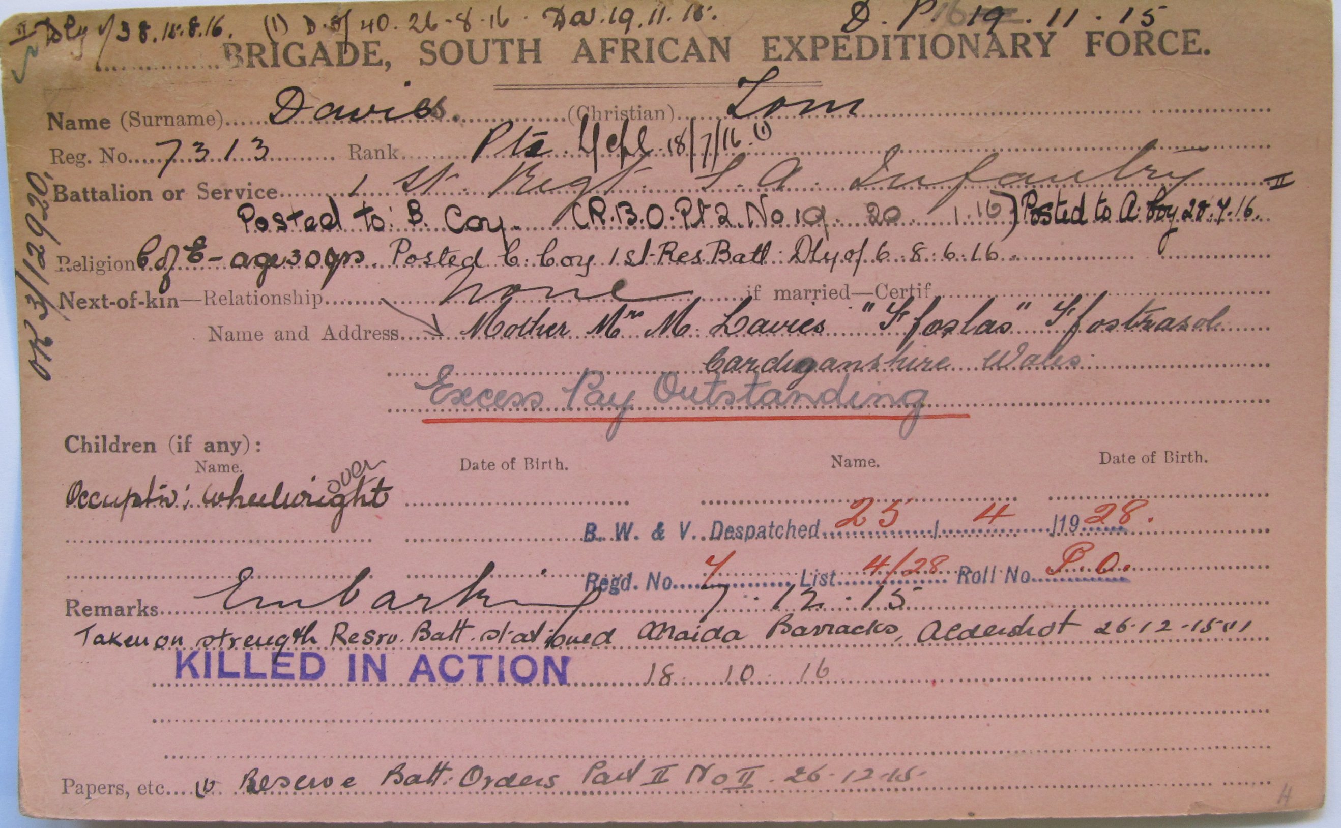 Son of Rees and Maria Davies, of "Ffoslas," Ffostrasol, Cardiganshire, Wales. |