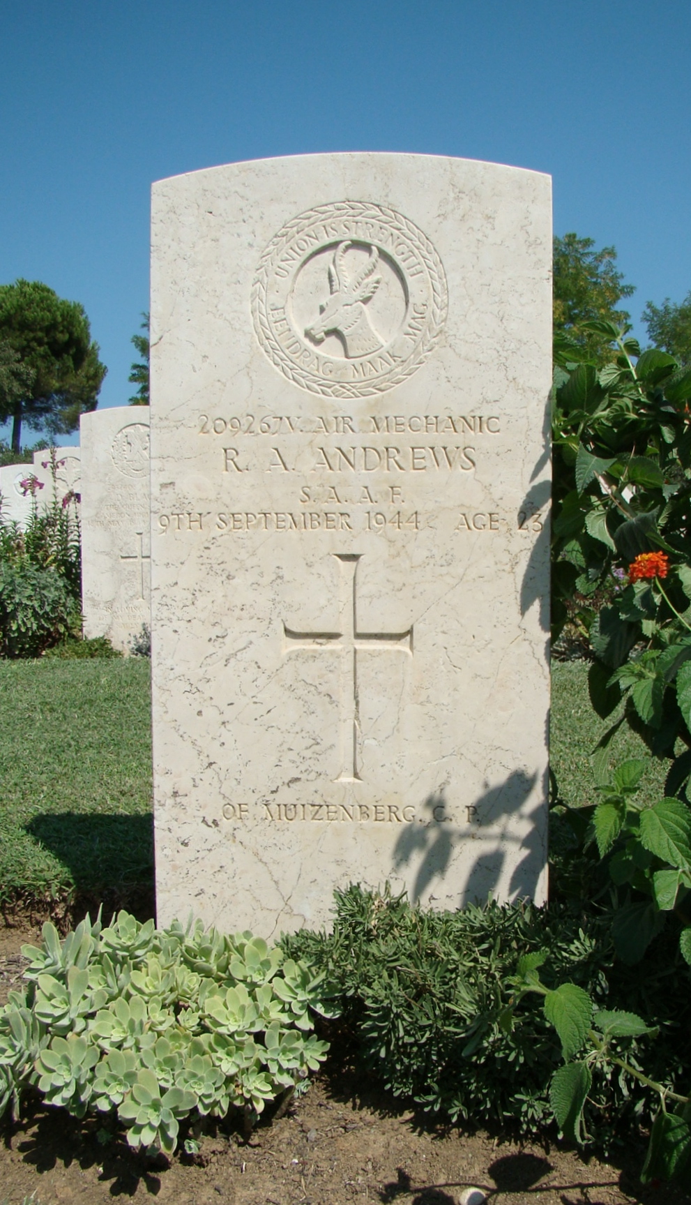 Son of William Allan and Bessie Thomazine Andrews, of Muizenberg, Cape Province, South Africa. |