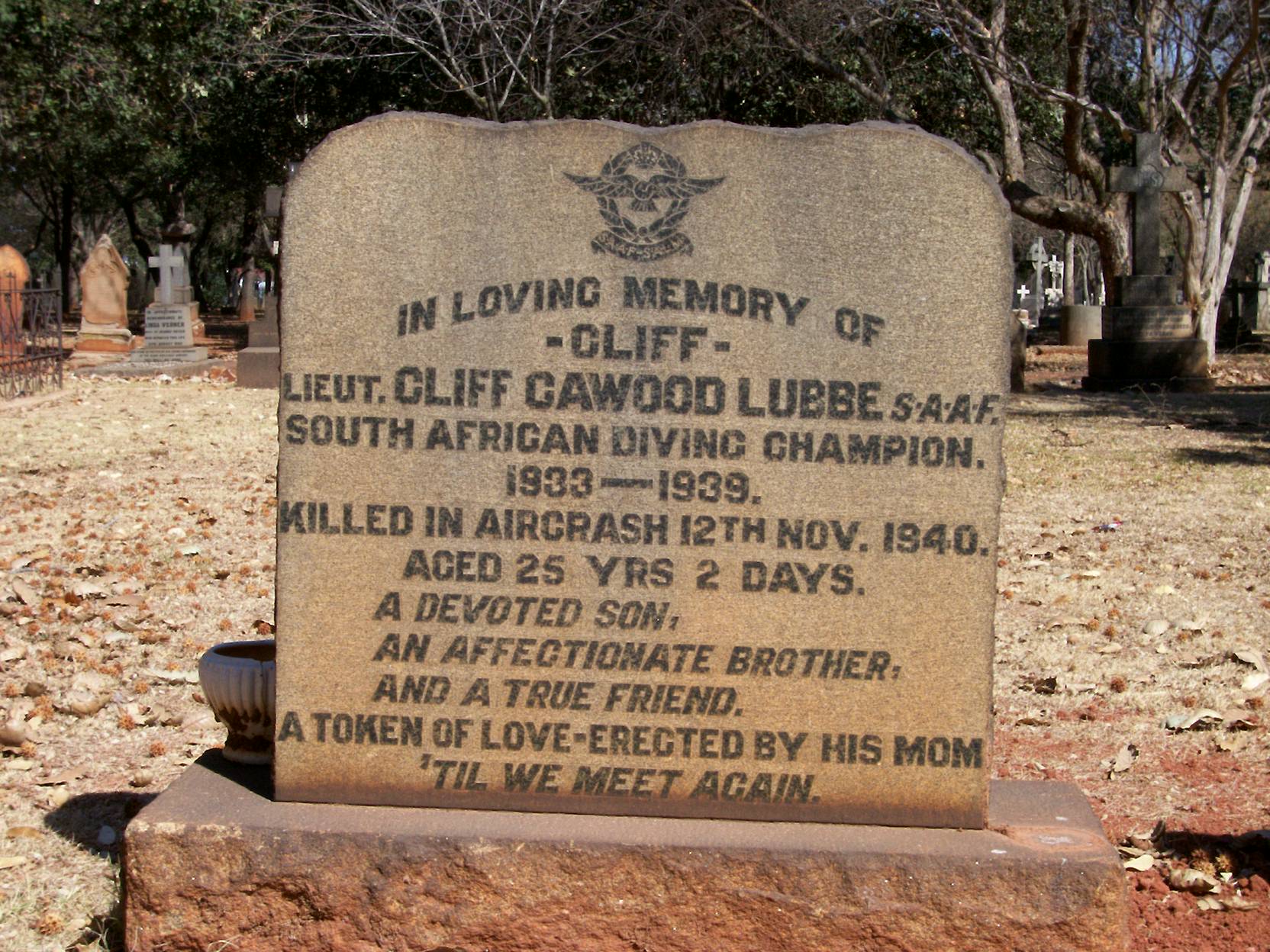 Son of Mrs. E. G. Lubbe, Johannesburg. South African Diving Champion 1933-1939 |