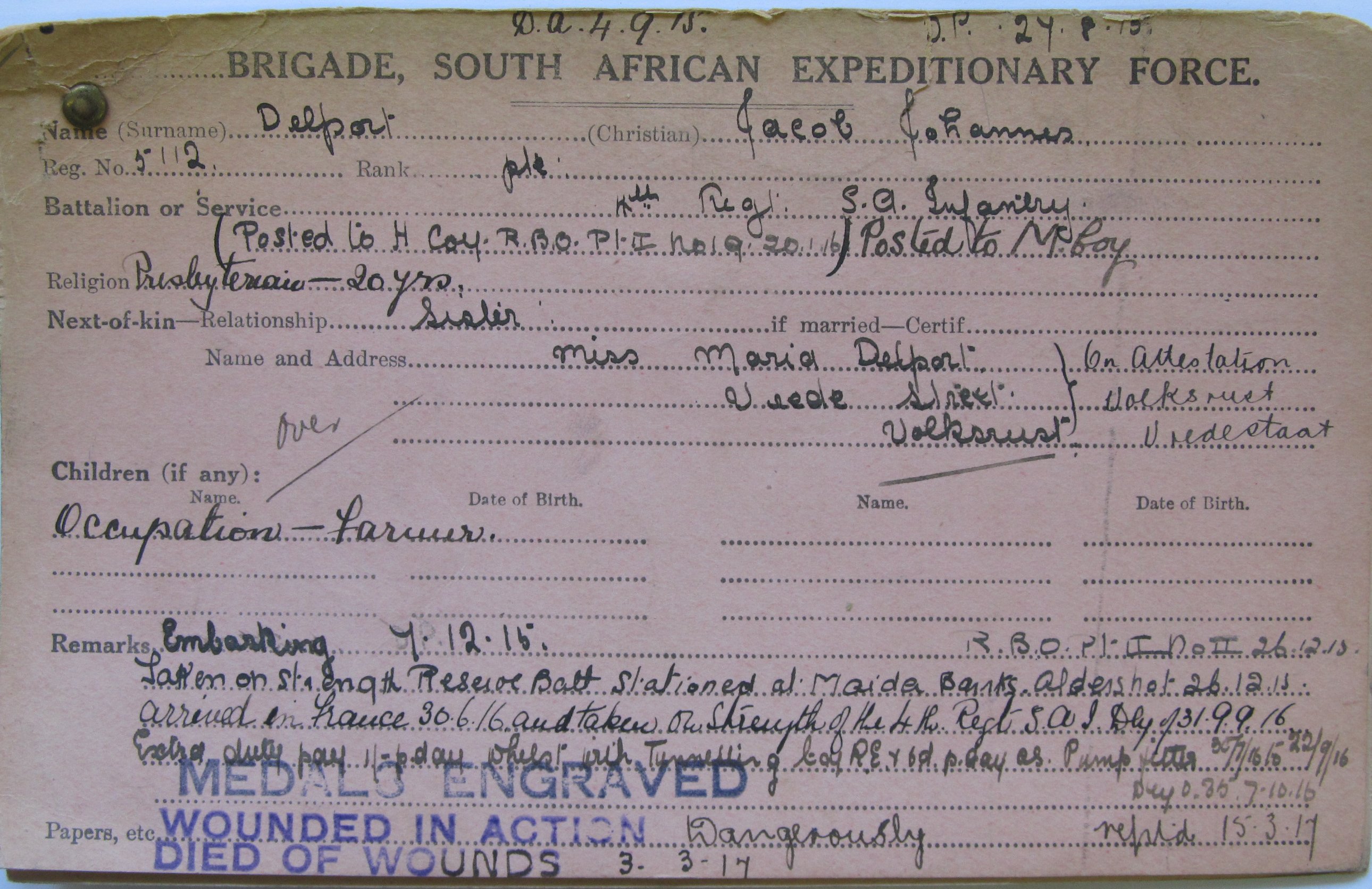 Brother of Miss Maria Delport, of Vrede Street, Volksrust