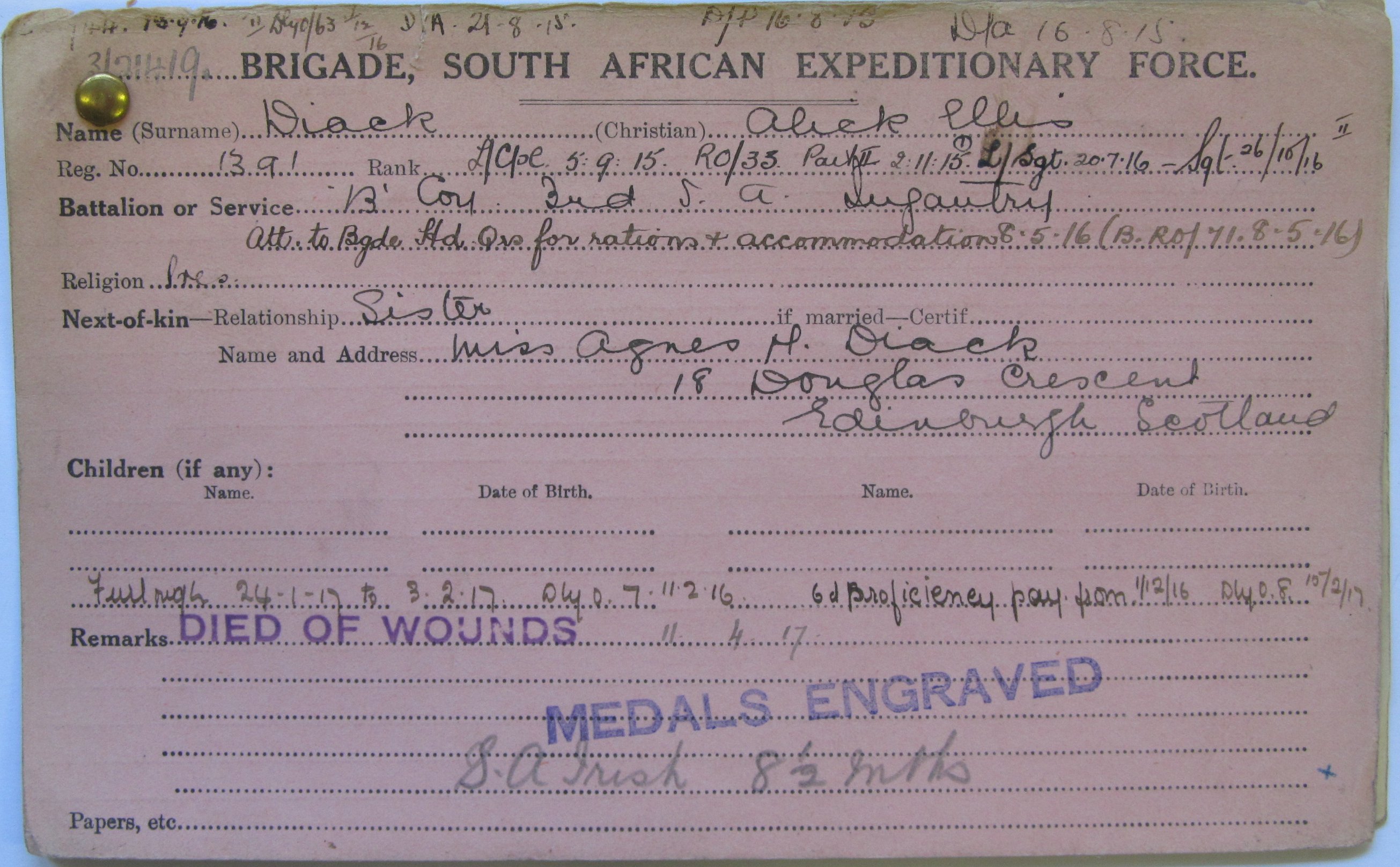 Son of the late Francis and Hannah Diack (formerly Schulz). Native of Cape Town, South Africa.