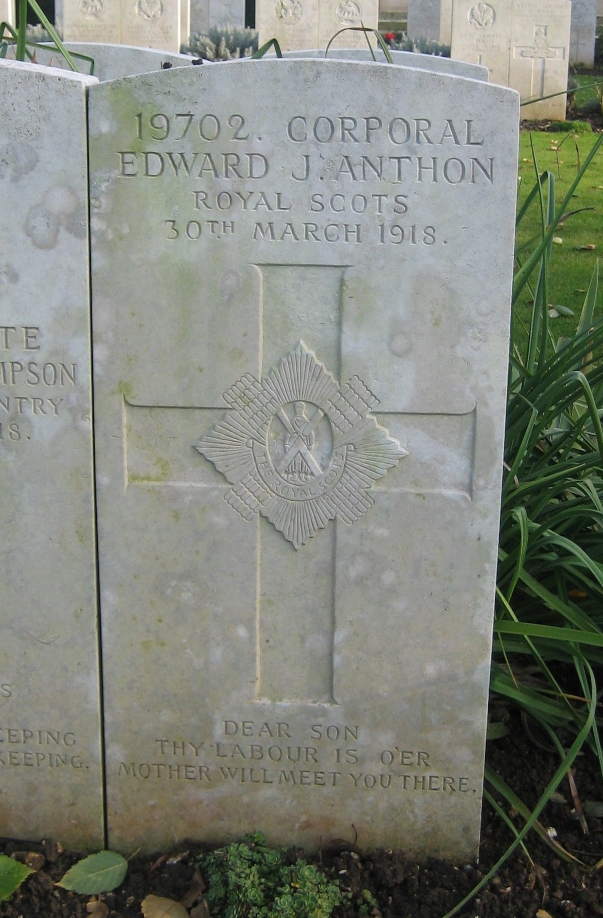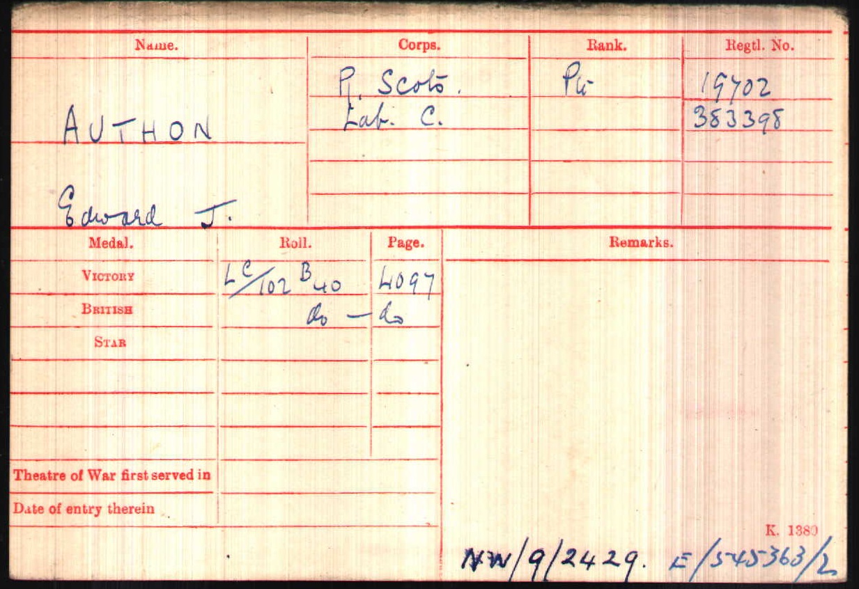Son of John James and Jolenda J. Anthon, of 539, Rochdale Road, Colly Hurst, Manchester; 3 years and 3 months service. Born at Cape Town, South Africa. |