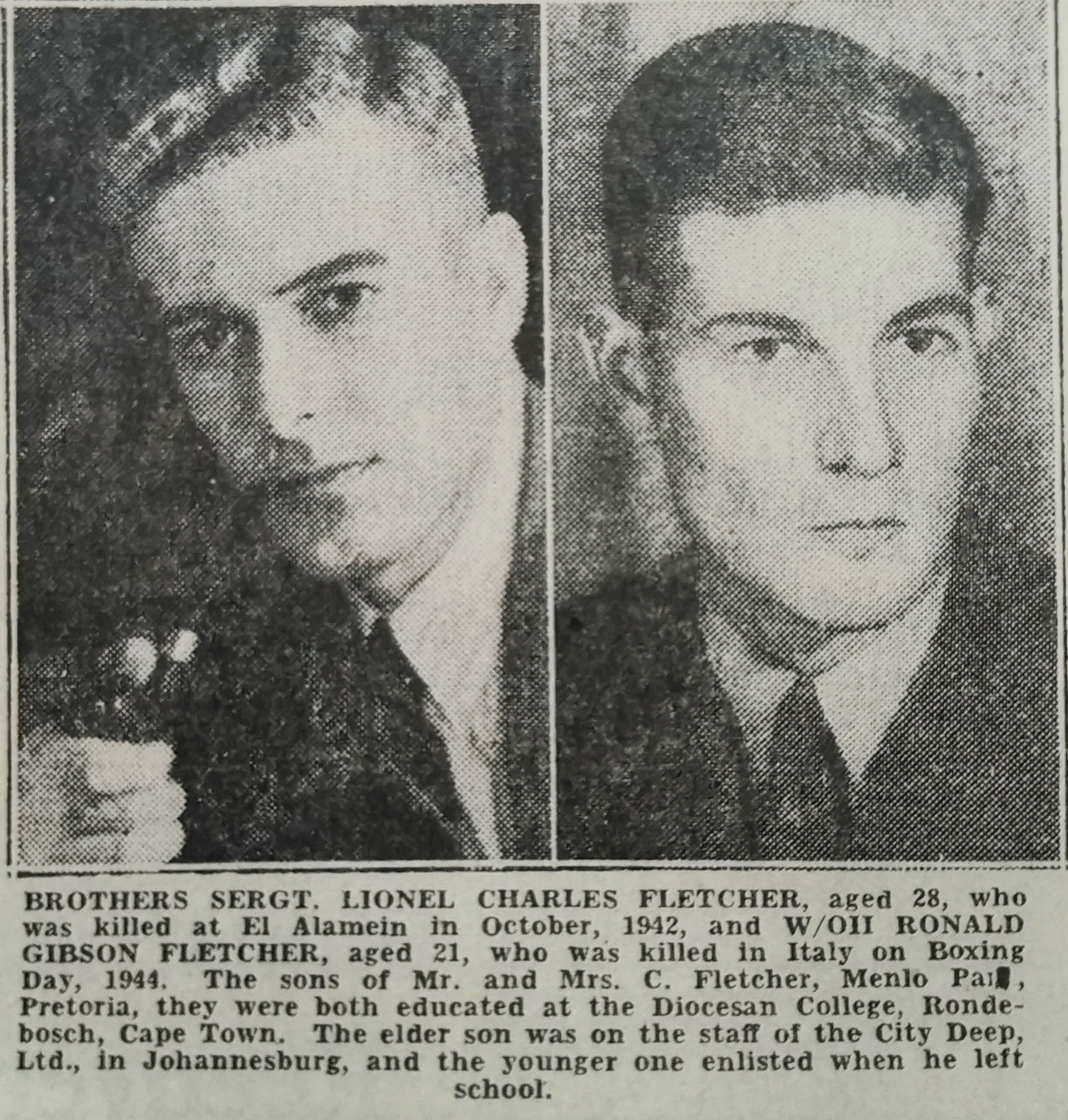 Son of Charles and Elizabeth Anne Fletcher, of Pretoria, Transvaal, South Africa. Educated at Diocesan College, Rondebosch, Cape Town. A scholar. His brother also died on service