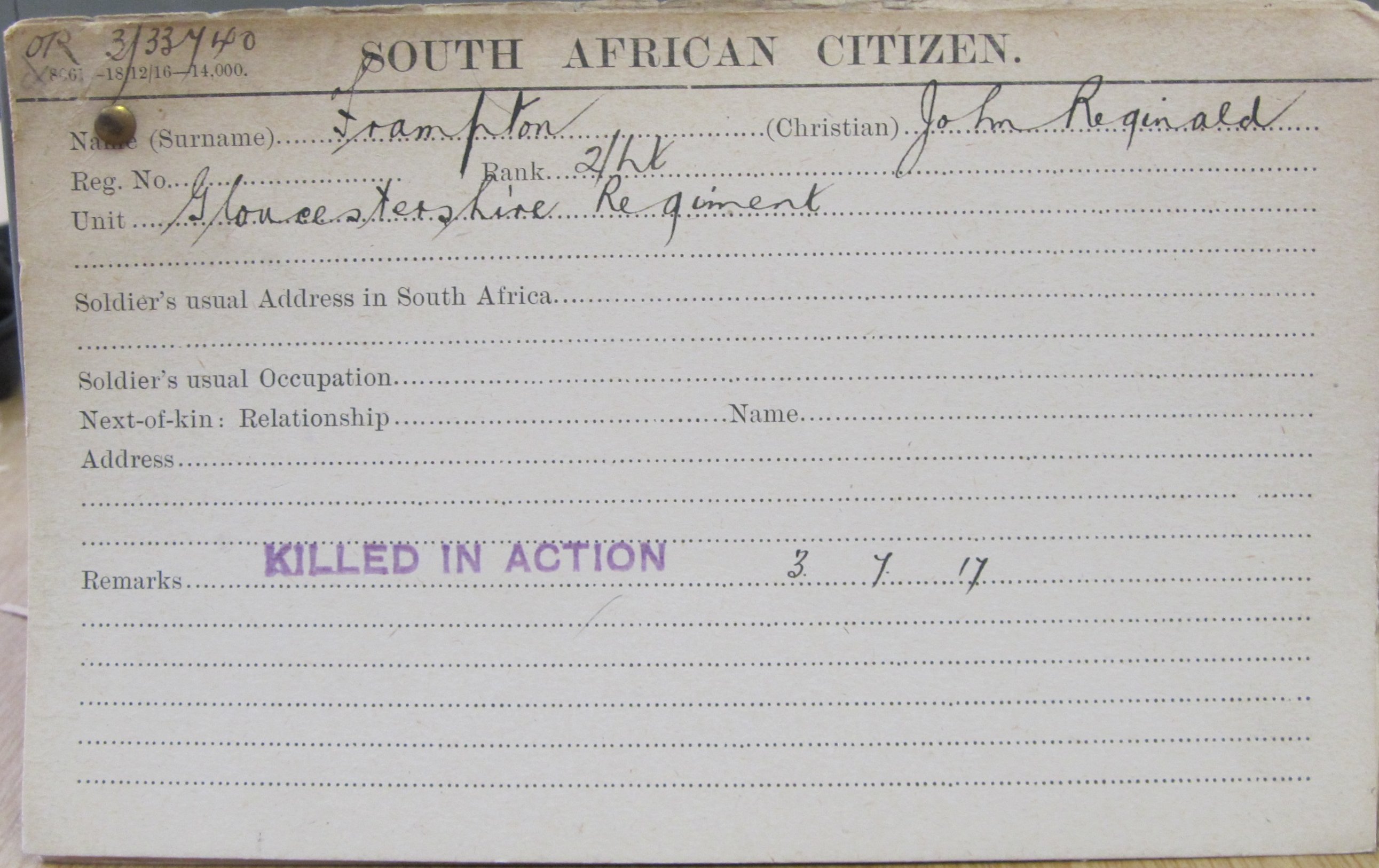 Son of Henry William Lawrence and Ethel Mary Frampton, of Greytown, Natal, South Africa. On St John's Gowrie Presbyterian Church Cemetery Great War Memorial
