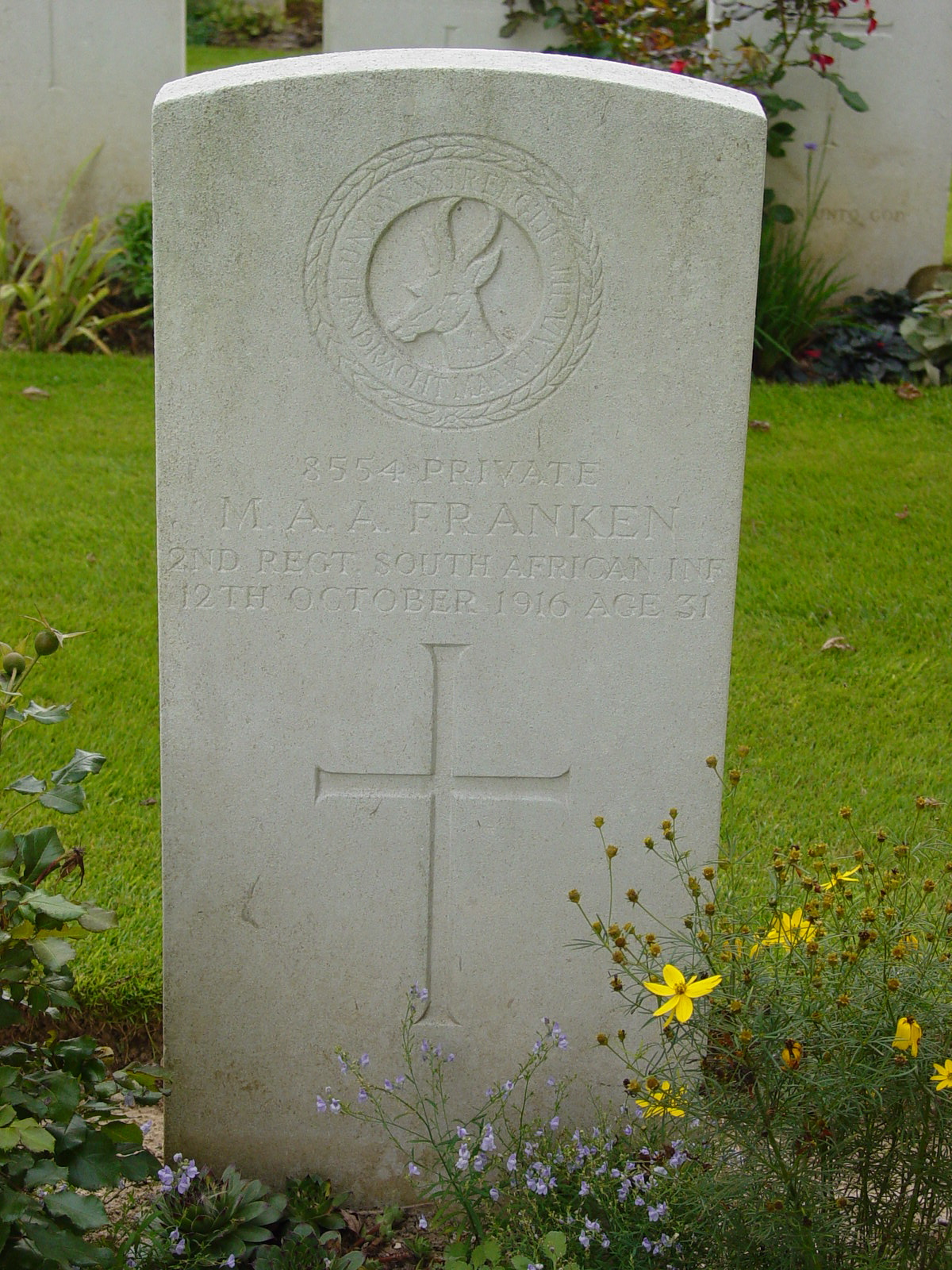 Son of the late Marinus and Johanna Franken (nee Van Loon), of Pretoria. |