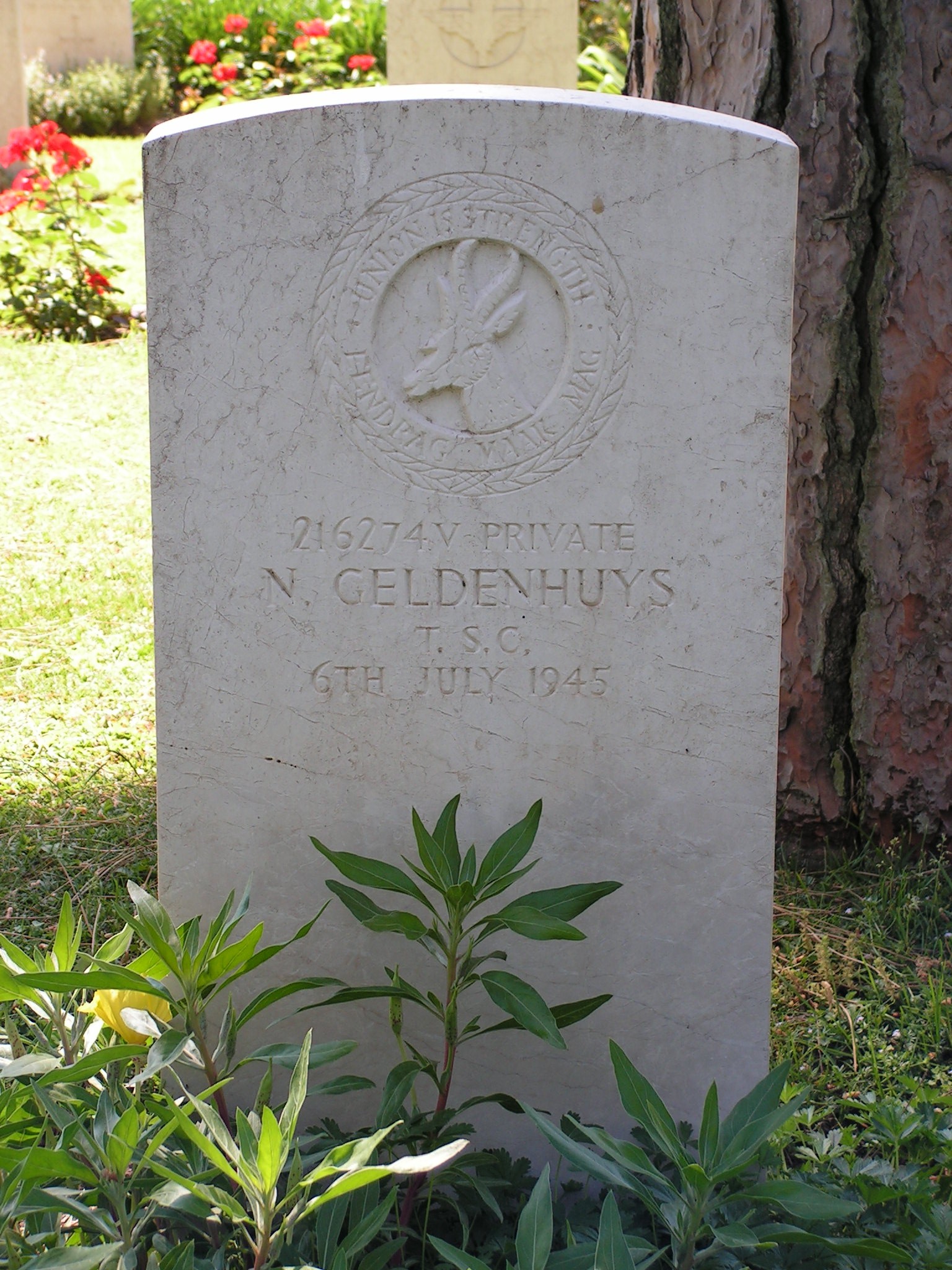 Son of Jacobus Willem and Heiletje Johanna Geldenhuys, of P.O. Sonop, Brits. Born Sutherland, Cape Province.