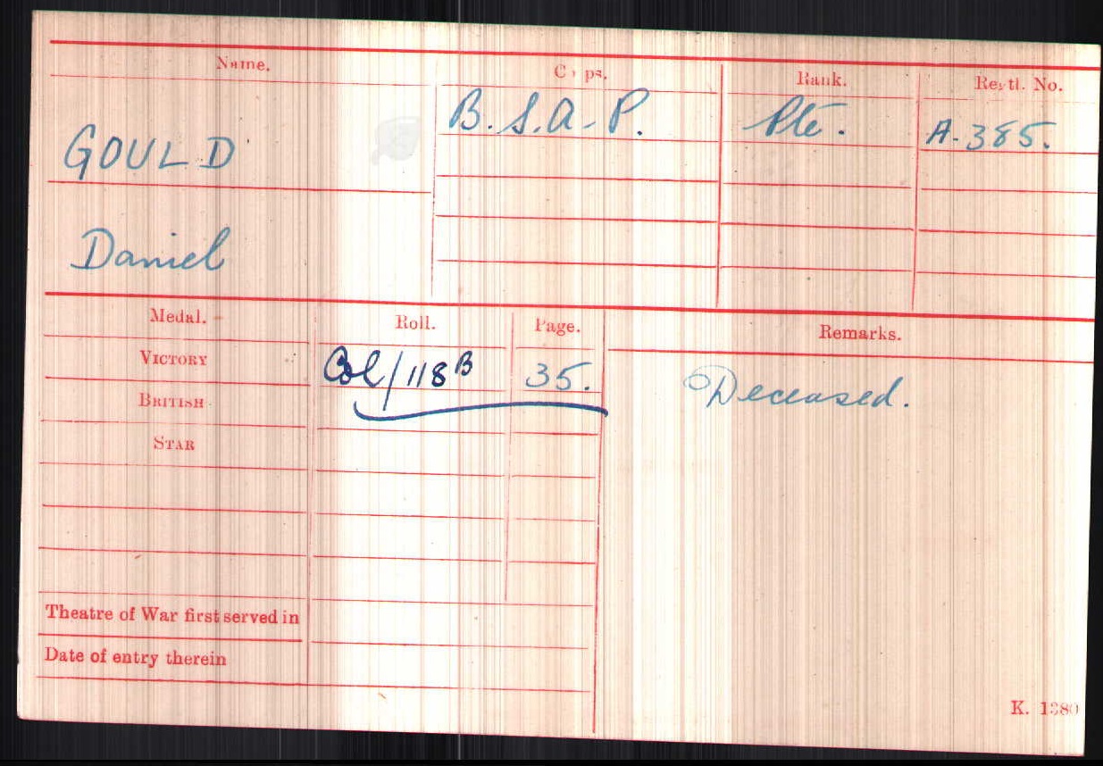 Son of Daniel and Catharine Gould, of 1, The Cottage, Ballintemple, Blackrock, Cork, Ireland.