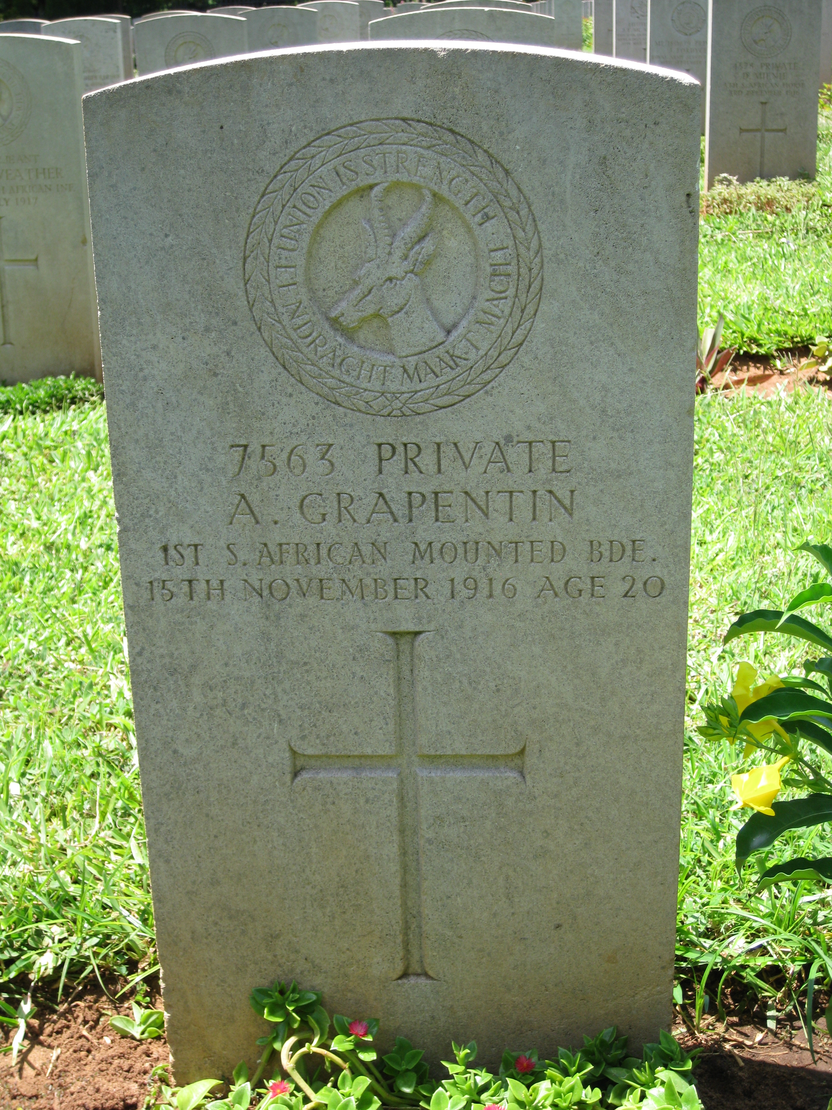 Son of Mr. and Mrs. Henry Grapentin, of King William's Town, Cape Province, South Africa.
