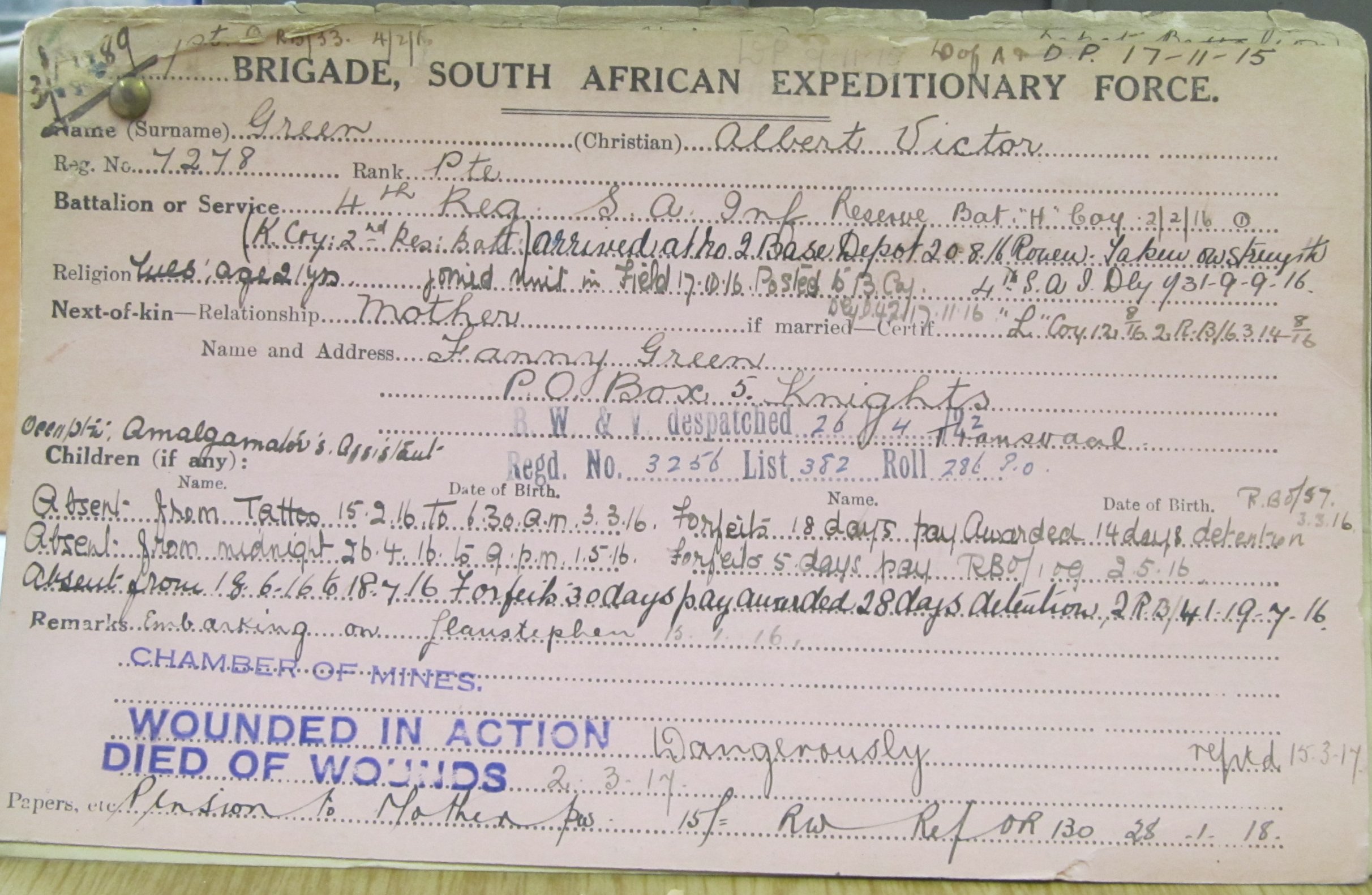 Son of Fannie Green, of Knights, Transvaal