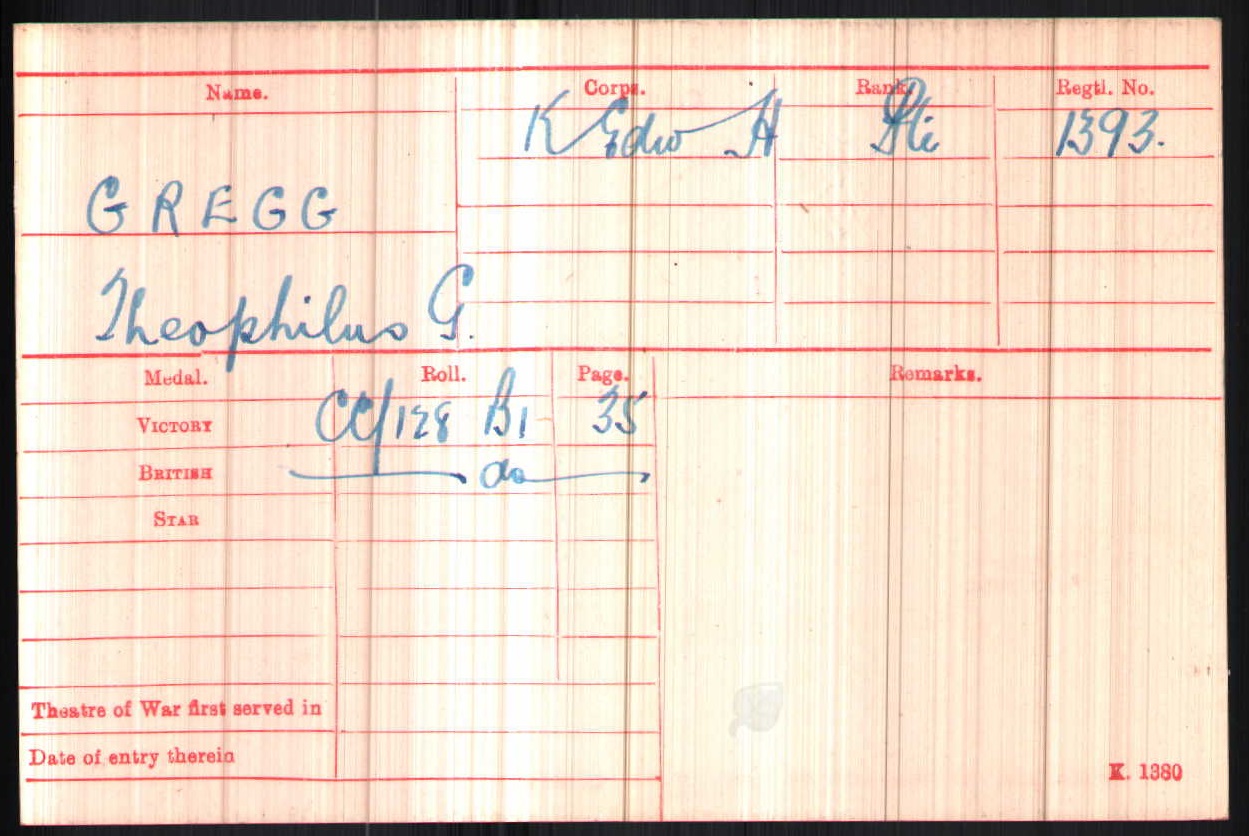 Son of Edwin and Agnes Gregg, of East London, South Africa. His nephew T G Kinghorn died in service in WW2