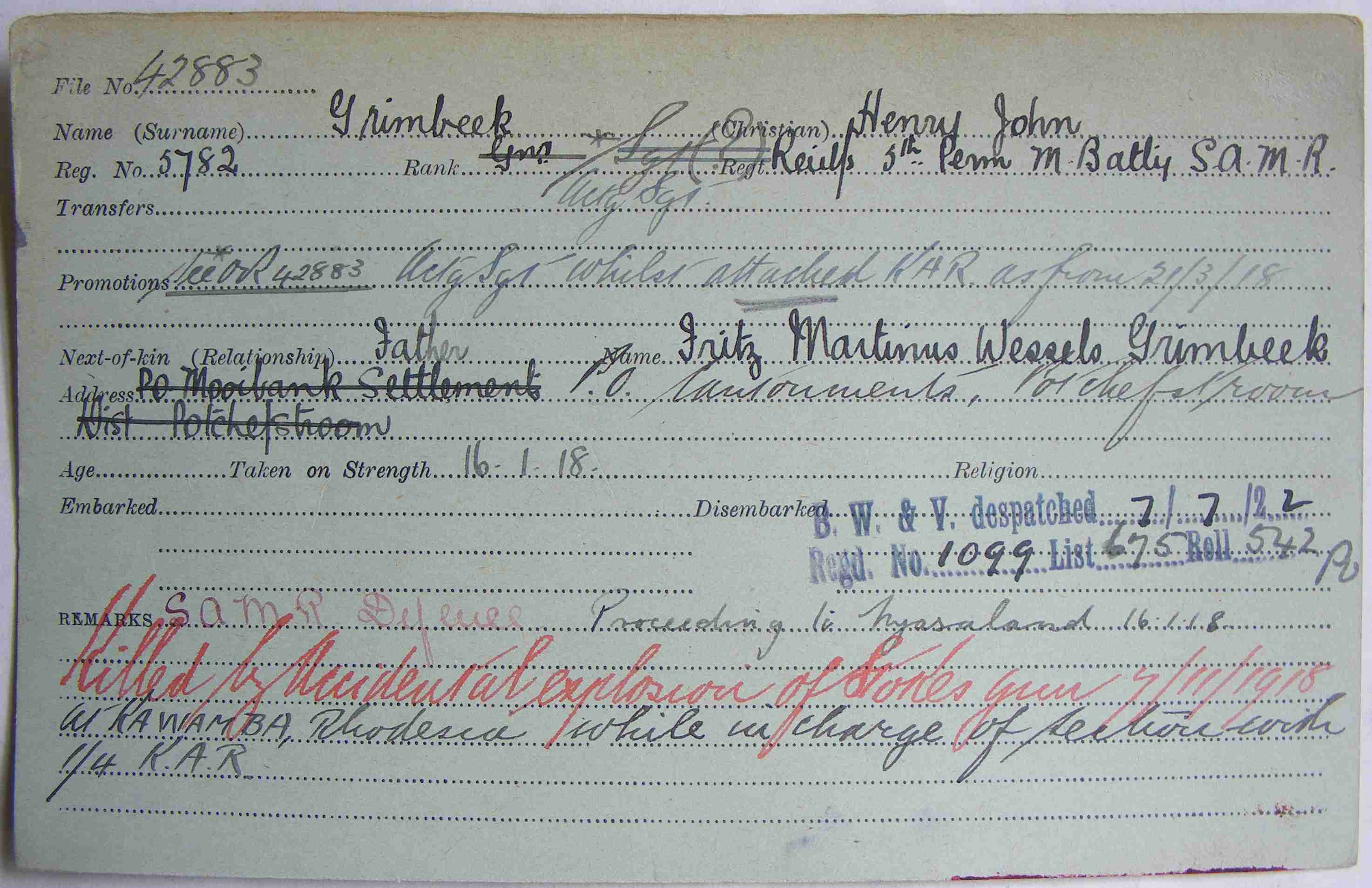 Son of Mr. Fritz Martinus Wessels and Mrs. M. E. Grimbeek, of 6, Rose St., Germiston, Transvaal.