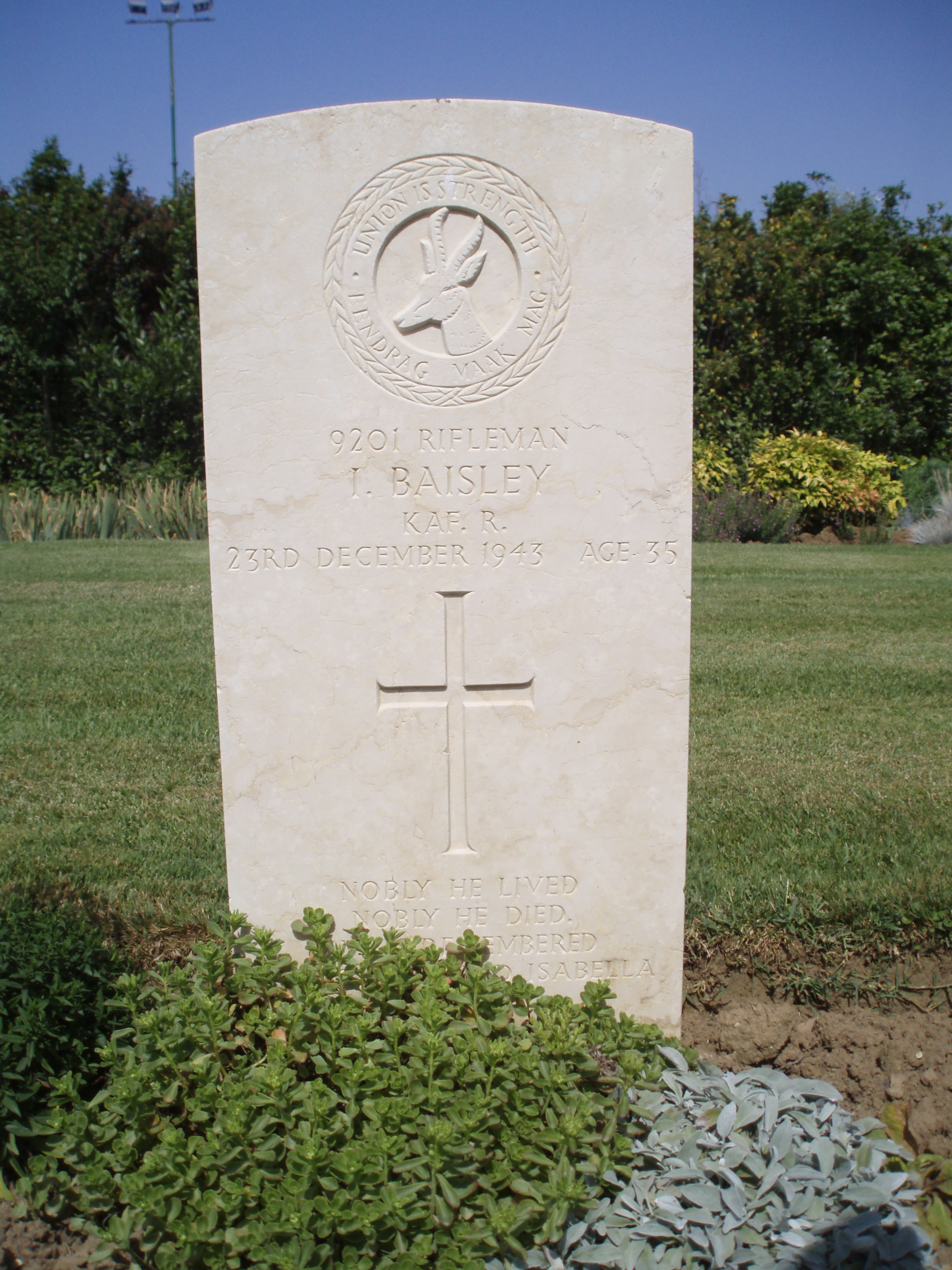 Son of William Henry and Martha Baisley, of Butterworth, Transkei; husband of Margaret Isabella Baisley, of East London, Cape Province, South Africa. Born Butterworth.