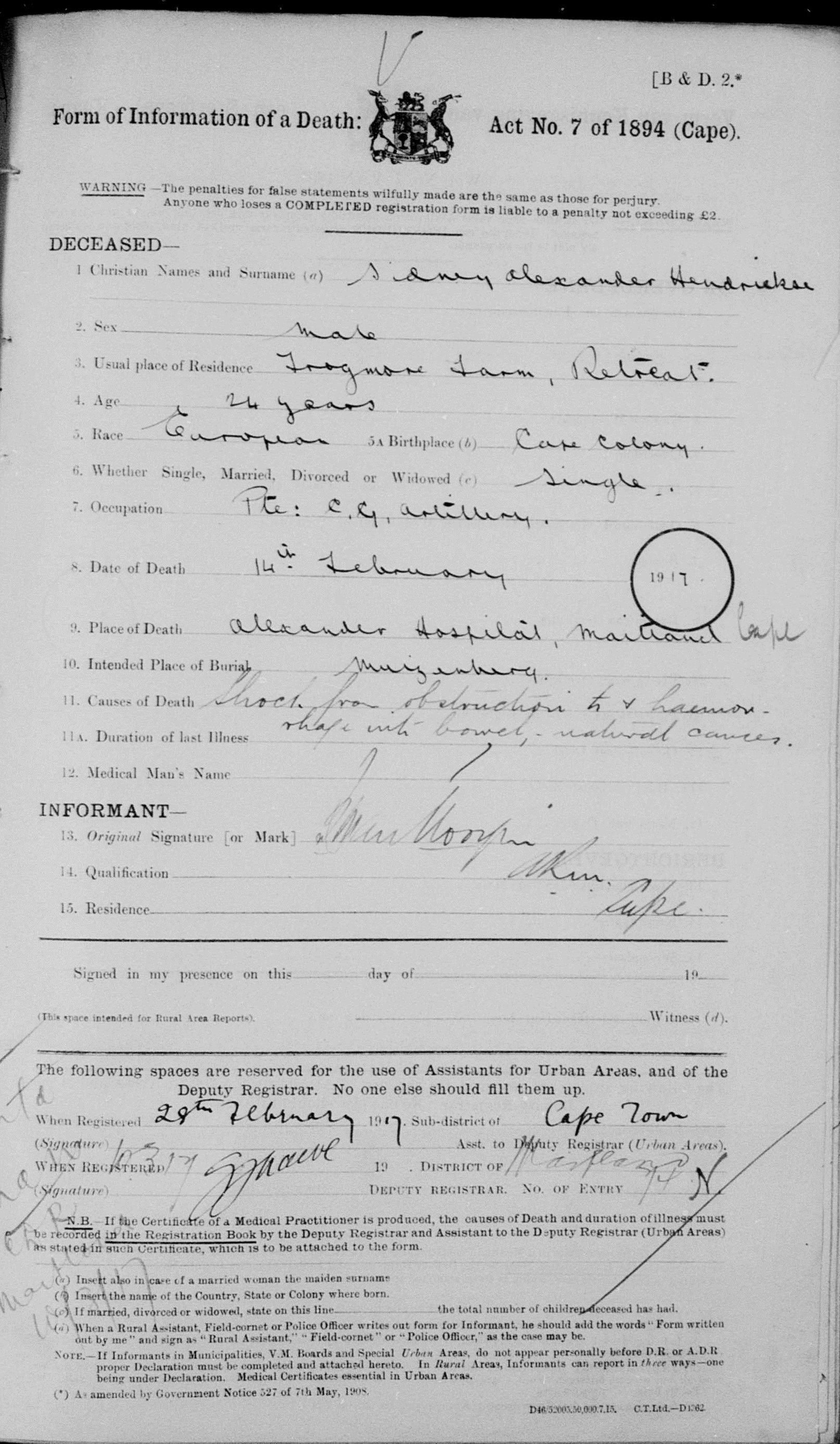 Son of Mr. F. Hendrikse, of Frogmore Retreat
