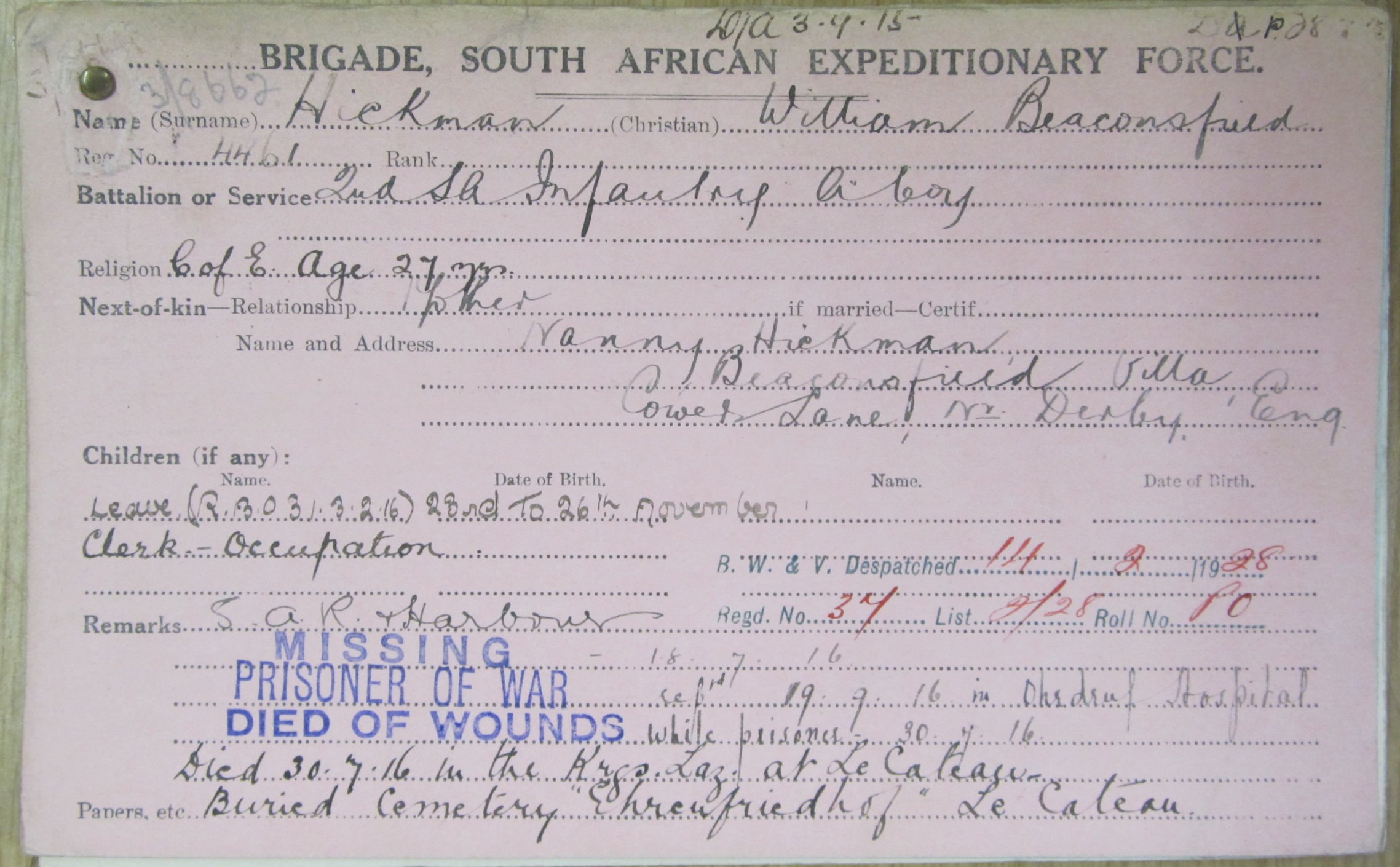 Died of wounds, whilst a POW |