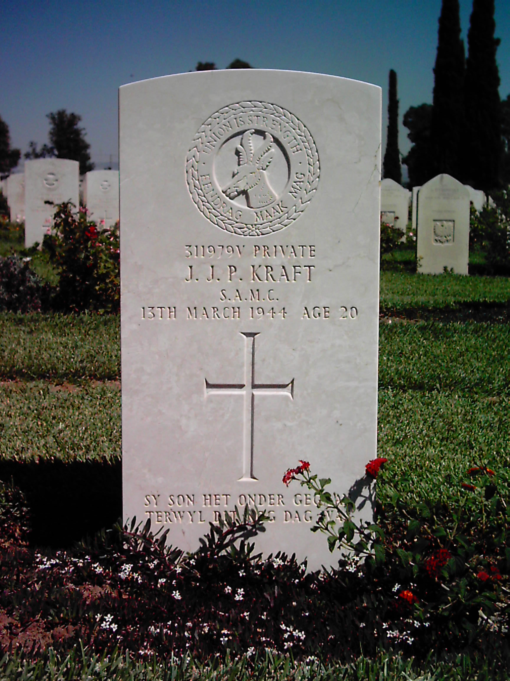 Son of Johannes Jurgens Phillipus Kraft and Lena Maria Kraft, of Krugersdorp West, Transvaal, South Africa. Born Koster, District Rustenburg.