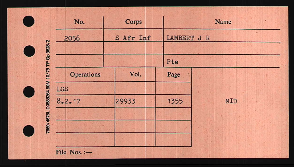 Son of Mrs. Louisa Lambert, of Aroca, Natal |