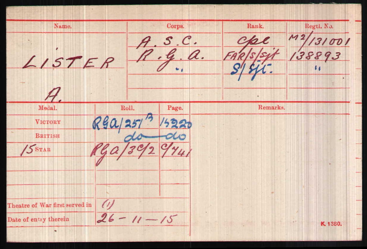 Son of John and Isabella Lister, of St. Bees Cottage, Annan. Husband of Charlotte E. Robertson Lister, of St. Bees Cottage, Annan, Dumfriesshire. ref. South African Roll of Honour 1914-1918
