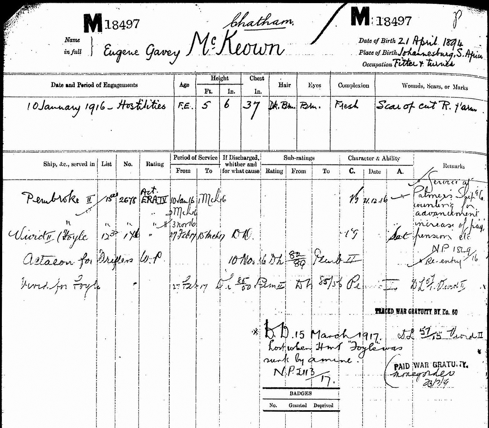 Son of James Philip and Margaret McKeown, of South Africa. Born Johannesburg.