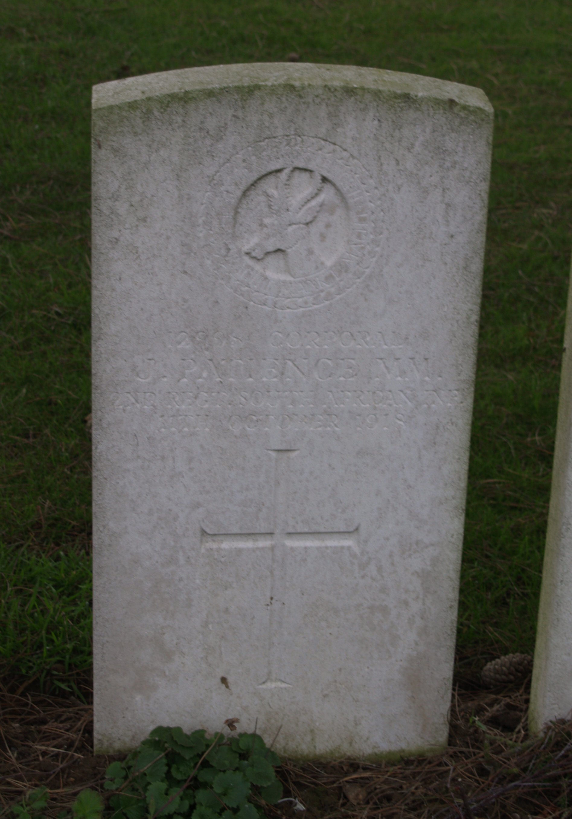 Son of the late Jemima Patience, of Bezuidenhout Valley, Johannesburg. On Bezuidenhout Valley War Memorial |