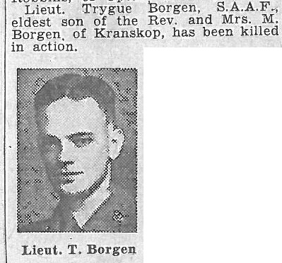 Son of Martin and Laura Borgen, of Malvern, Natal, South Africa. Born Durban. Educated Glenwood High School, Durban. A clerk.