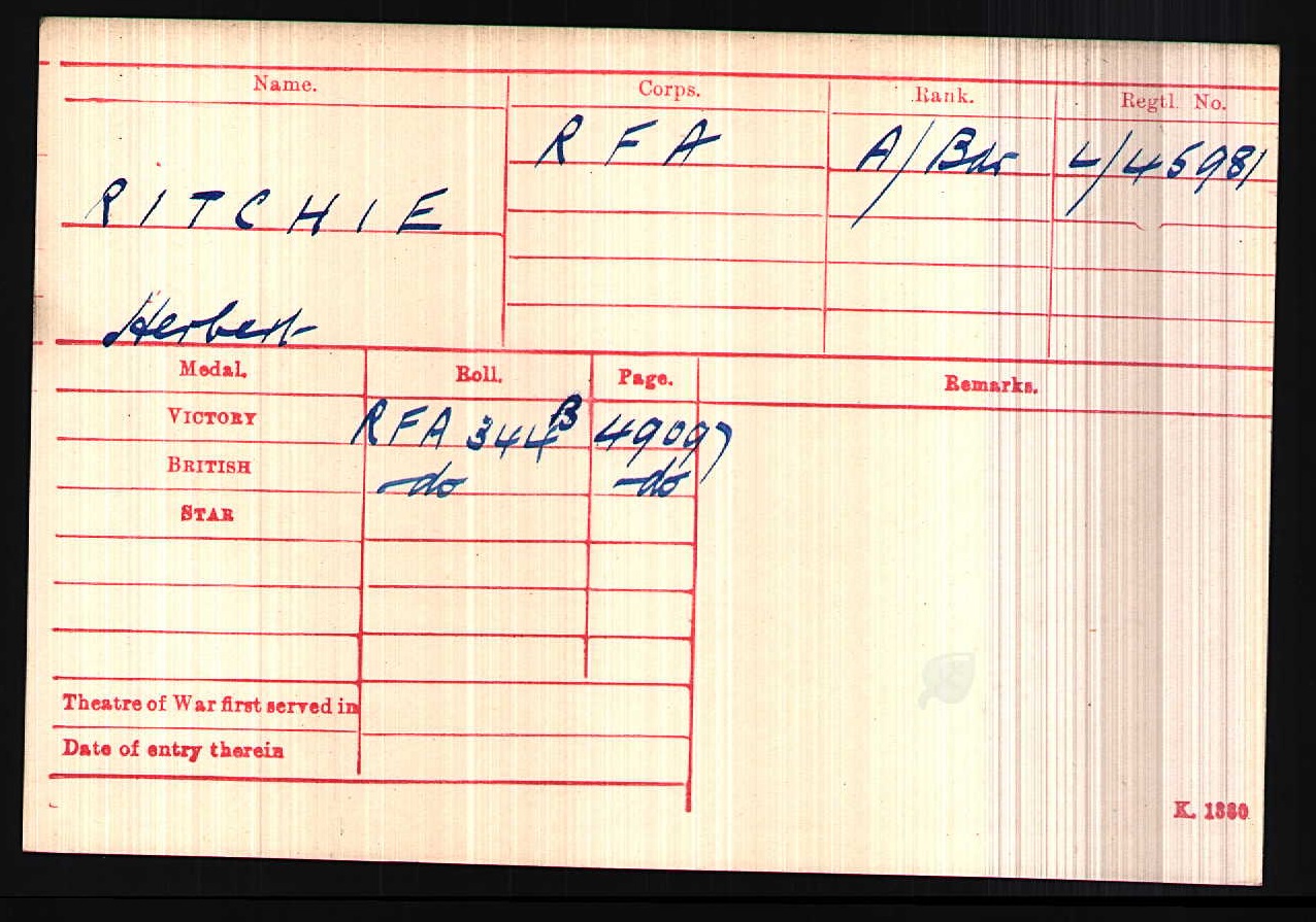 Son of Adam and Mary Ann Ritchie, of Umtata, South Africa. His brother also died in service.