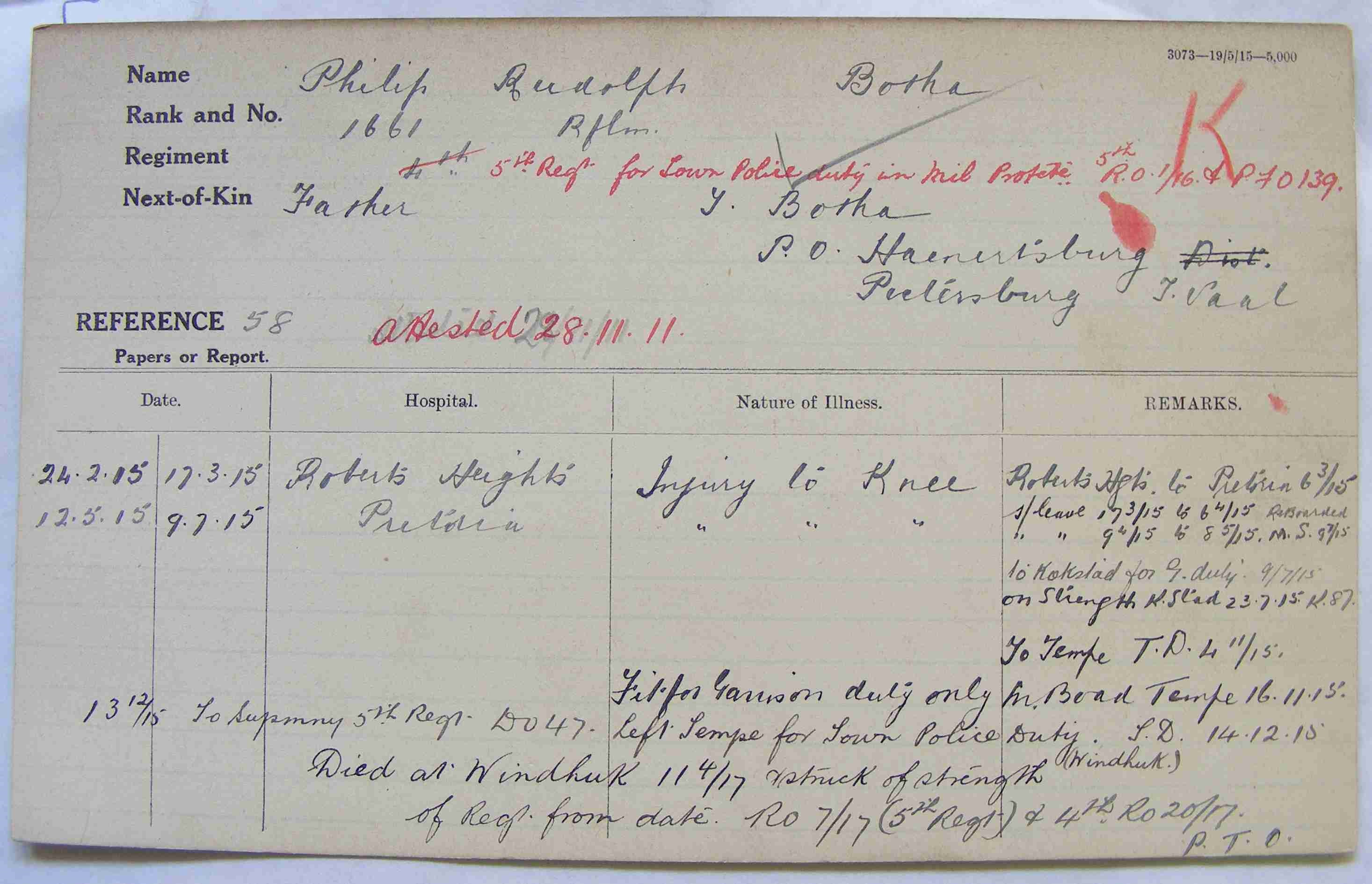 Died at Windhoek