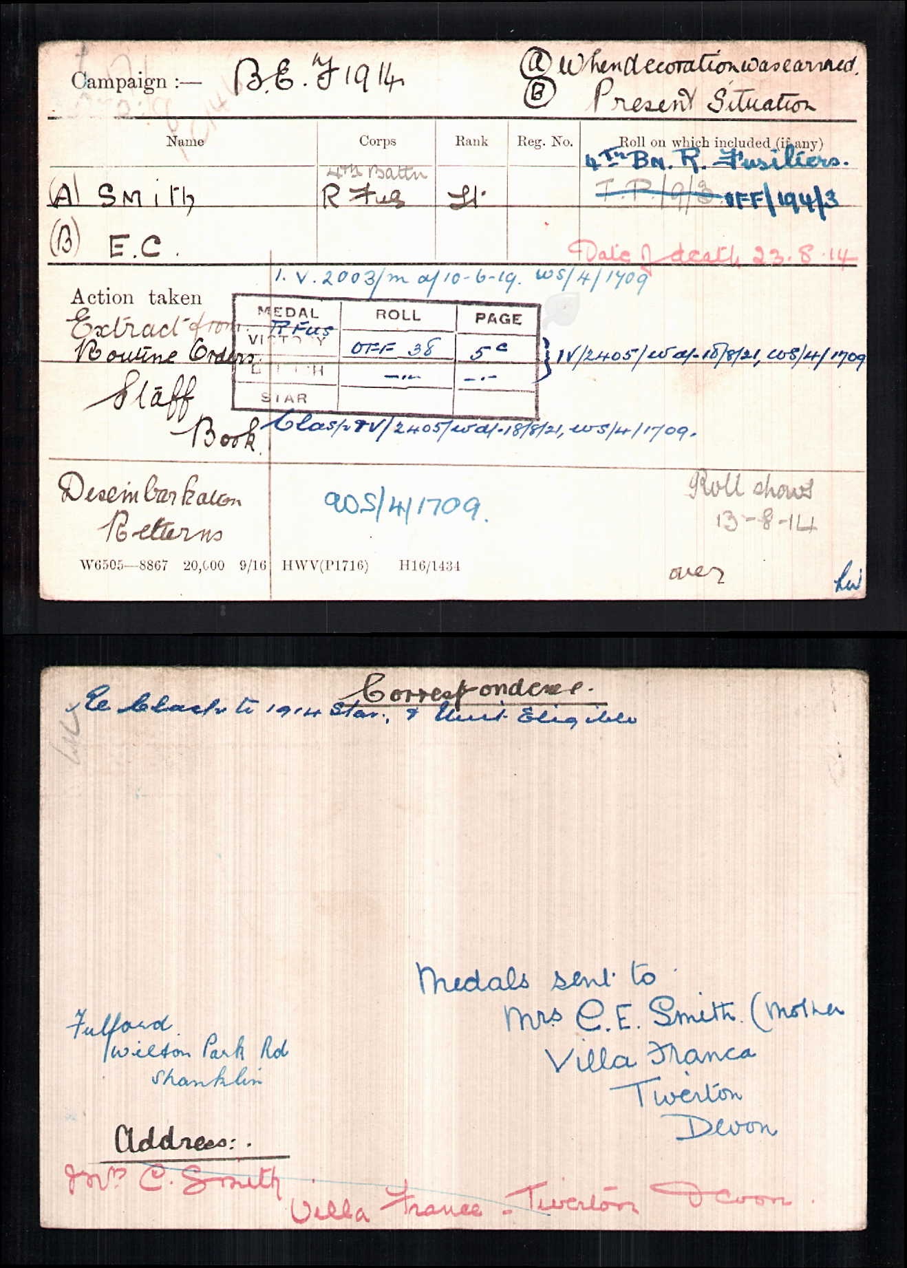 Son of the Rev. Cecil Evan Smith and Rosamond Linda Smith. Born Titsey, Surrey. ref. South African Roll of Honour 1914-1918