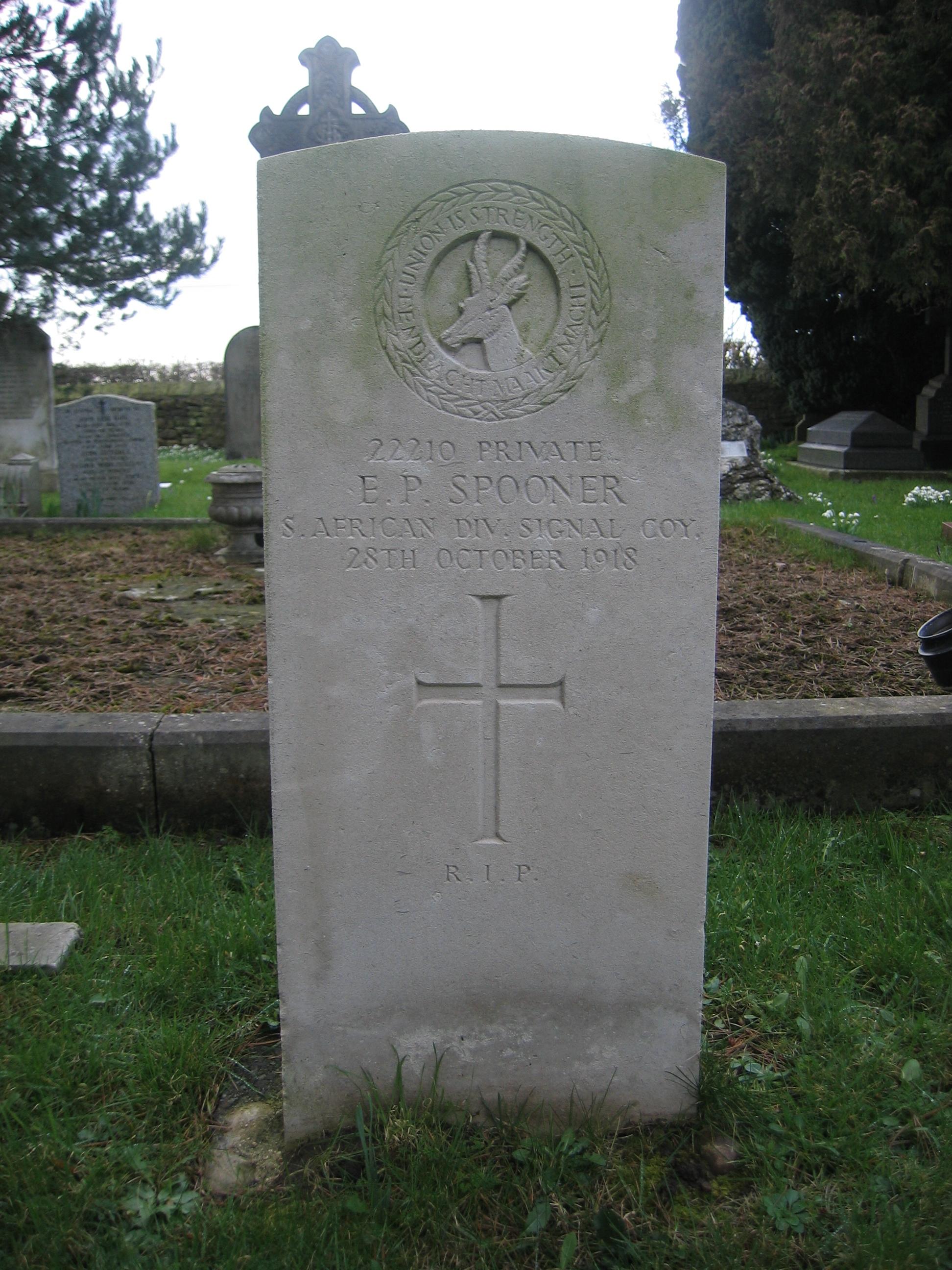 Son of Catherine Spooner, of 481 Burger Street, Pietermaritzburg, Natal. ***Amend headstone wrong initials. |