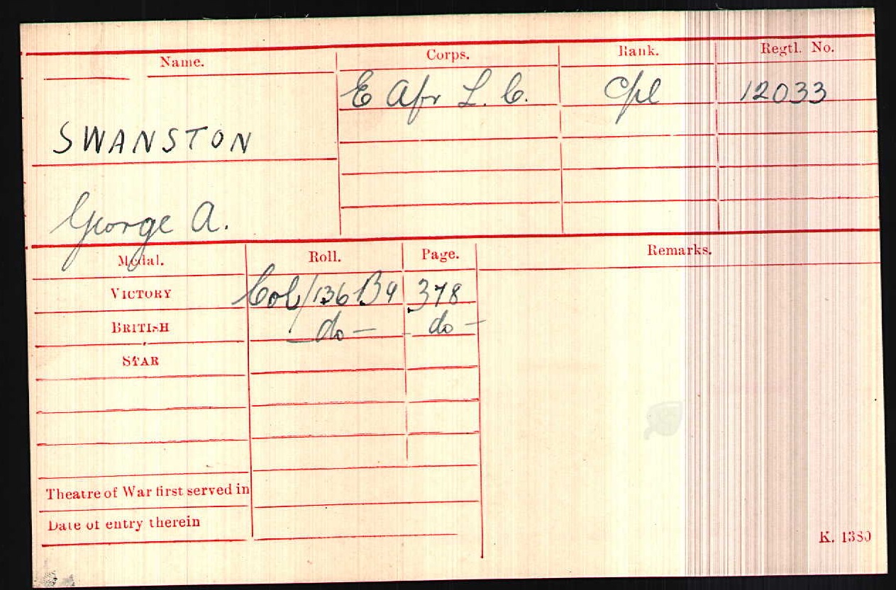 Father of George Edward Swanston, of Brixton, Johannesburg |