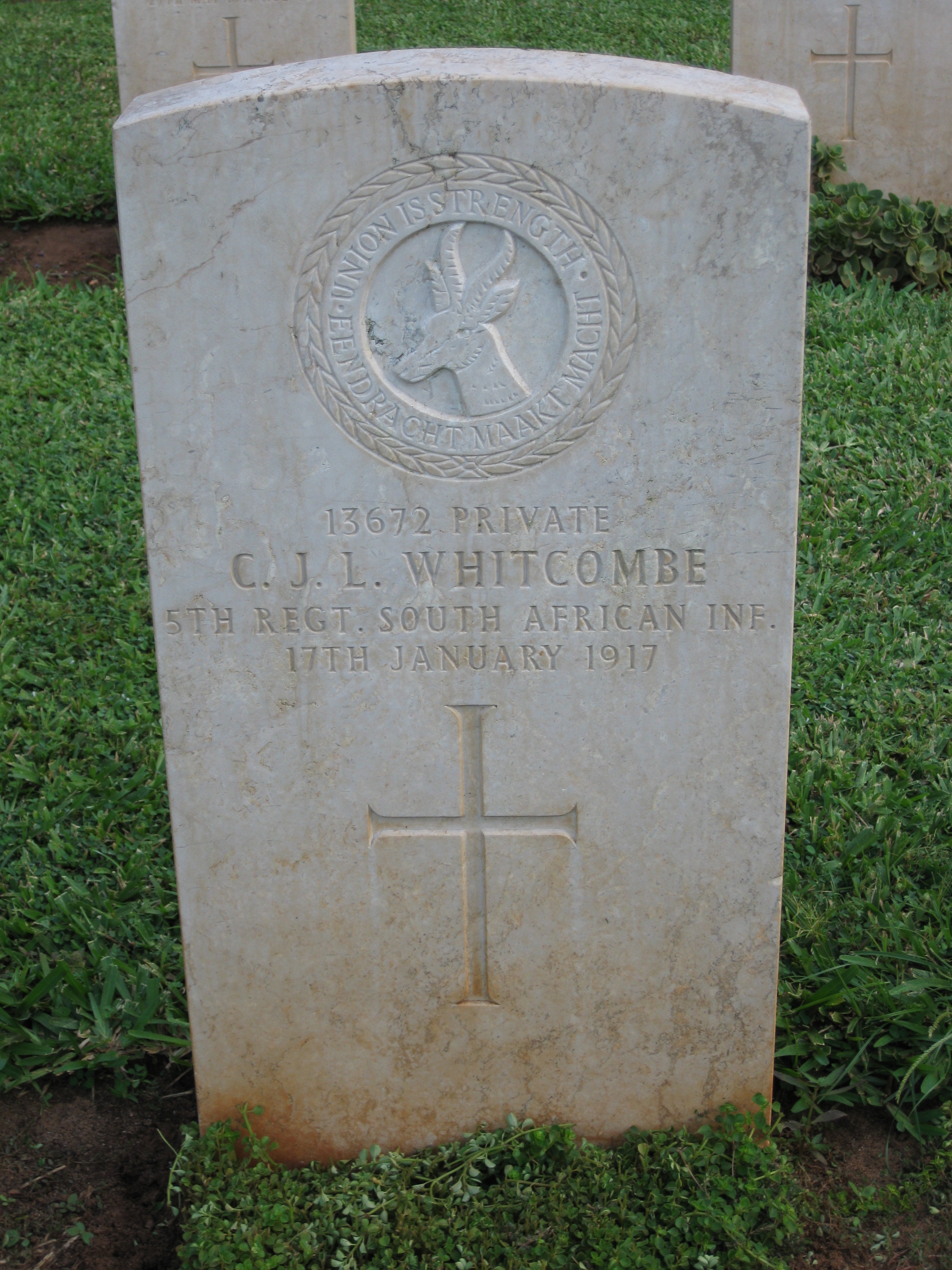 Son of Mrs. A. E. Whitcomb, of Pretoria. ***CWGC has WHITCOMBE on headstone |