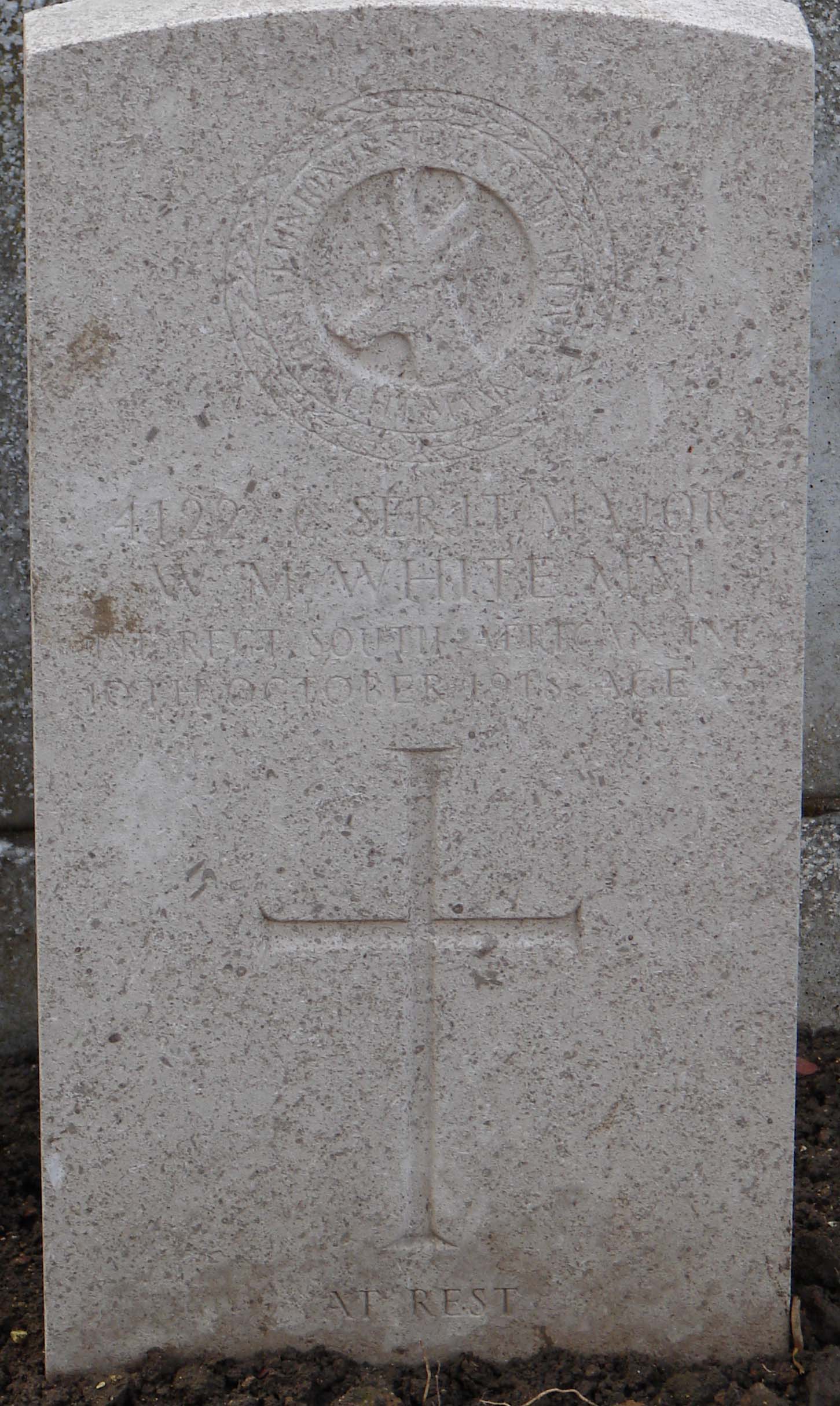 LG Sup 13 November 1918 pg. 13401 - The original recommendation by Lieutenant Colonel H. W. M. Bamford, M.C., Commanding South African (Composite) Battalion, states: "In the attack and capture of Meteren on 19th July, 1918, this NCO took command when two Platoon Commanders had become casualties. By his gallant leadership the objective was gained and consolidated, under his supervision. Relieved later of his command by an officer, Sergt. White was ordered to carry an important message. He was severely wounded en route, but pluckily continued his journey and delivered his message." |