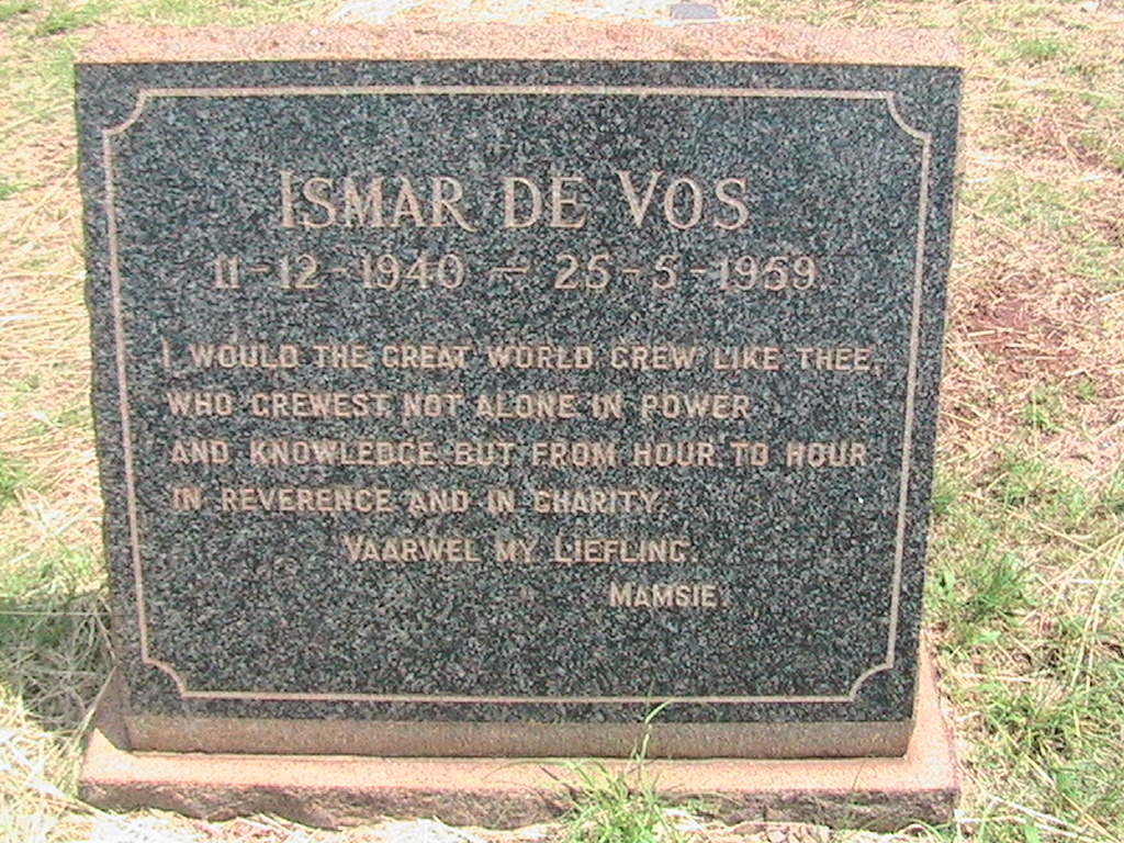 Son of Mrs. M. E. De Vos, of Barberton.