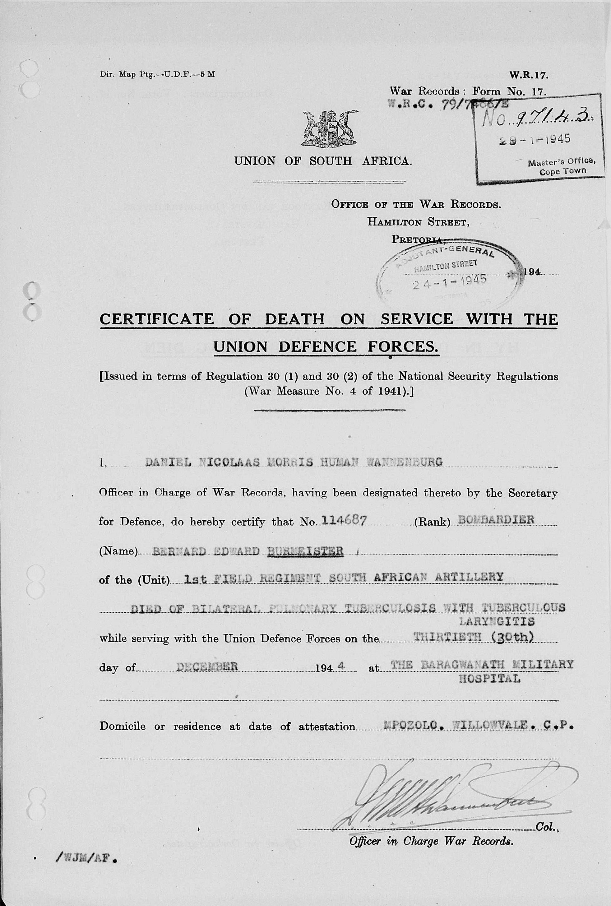 Died of bilateral pulmonary tuberculosis and tuberculous laryngitis |