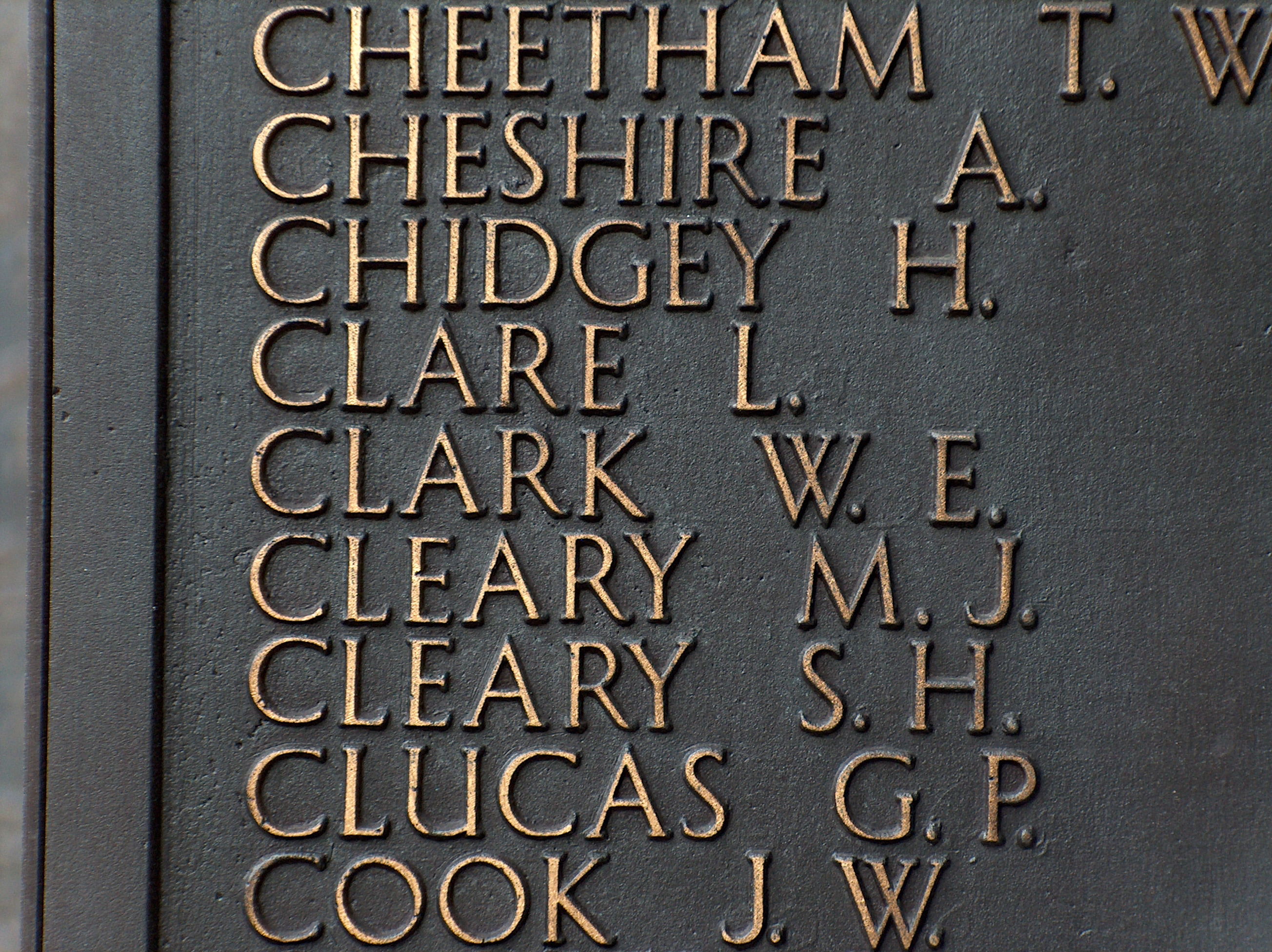 Son of William and Eleanor Evelyn Clark; husband of Norah Evelyn Clark, of Durban, Natal, South Africa. Master Mariner, Merchant Navy. Ex-cadet of the South African Training Ship General Botha. Born Durban. Educated Mansfield Road School, Durban; Cadet draft 1925/26. In 1927 joined the Union Castle Mail Steamship Co. As Cadet and served in the Merchant Navy until 29 October 1942, when he was released to join the SANF. He was on his way out from England on priority passage to take up the post of Lieutenant, SANF, since he could not be attested in London, when the Ceramic, on which he was travelling, was torpedoed and sunk, and he lost his life on 7 December 1942. |